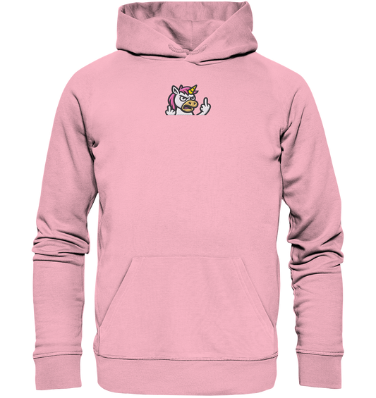 Einhorn mit Mittelfinger – Zu süß zum Ertragen, zu frech zum Ignorieren - Organic Hoodie (Stick)