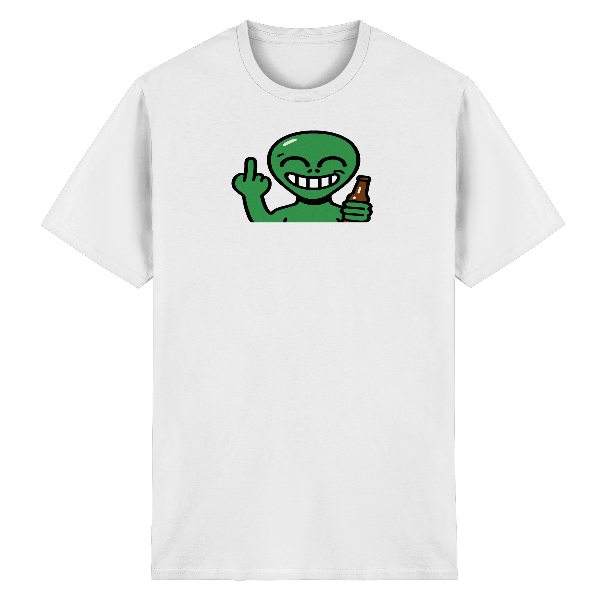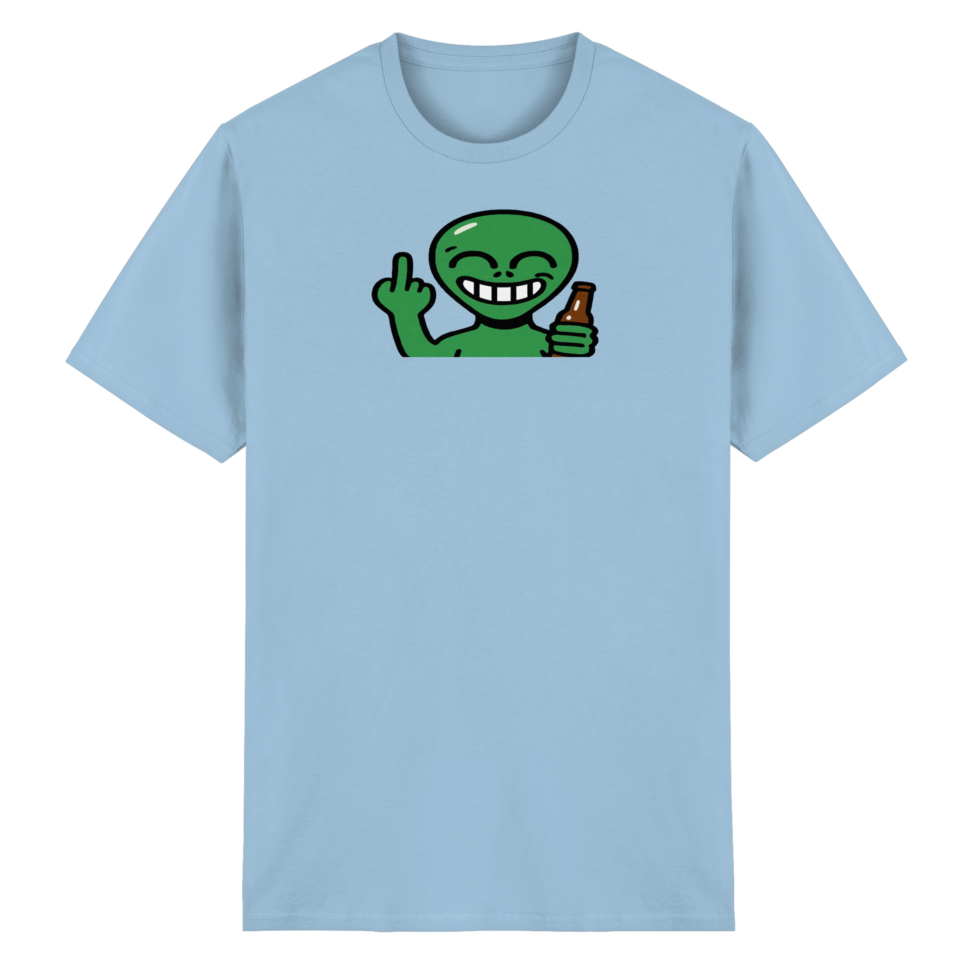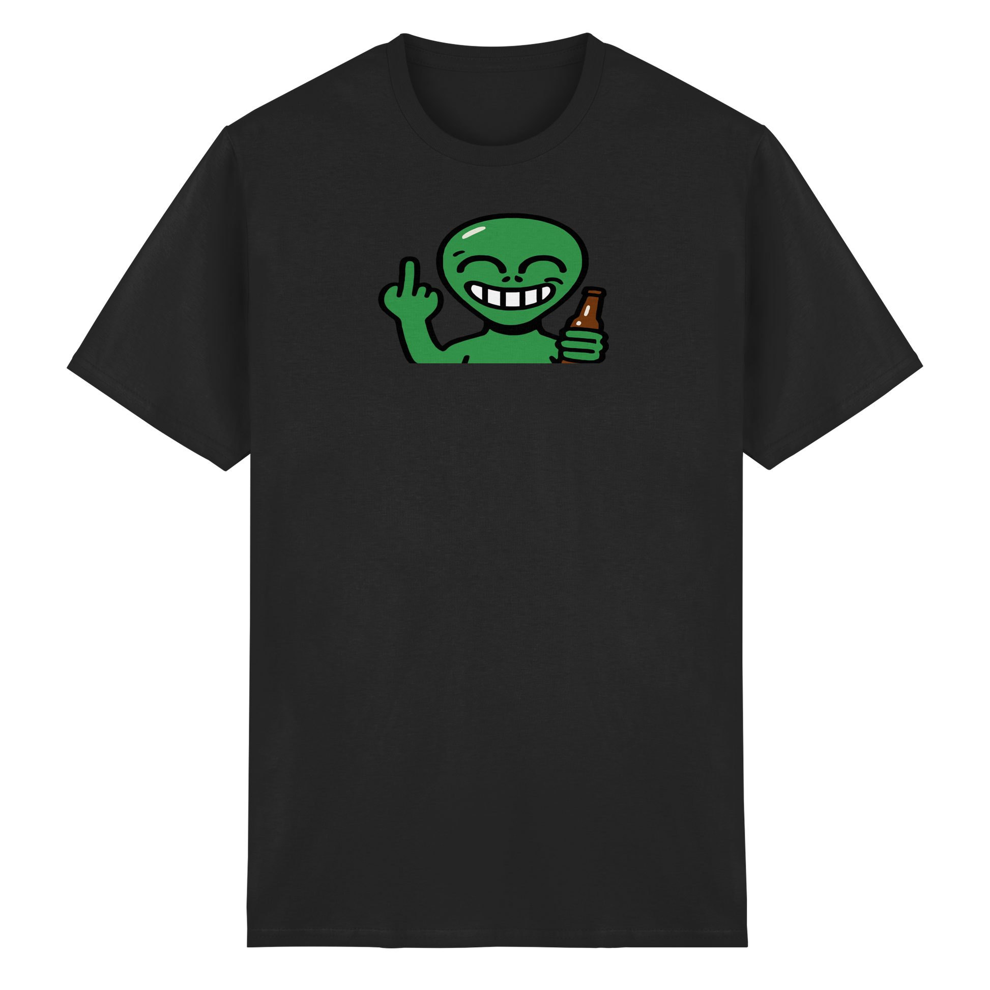 Feiern wie in der Schwerelosigkeit – aber mit klarer Ansage. Dieses Alien hat keine Zeit für belanglose Gespräche. Es will tanzen, fliegen, schwebend Grenzen setzen. Stylisch, spooky und mit interstellarer Attitüde. Wenn du auf der Erde feiern musst, aber mit der Coolness von Proxima Centauri. Trag es, wenn dein Space privat ist – auch auf Partys. Ein Fingerzeig direkt aus der Galaxie „Nicht dein Business“.