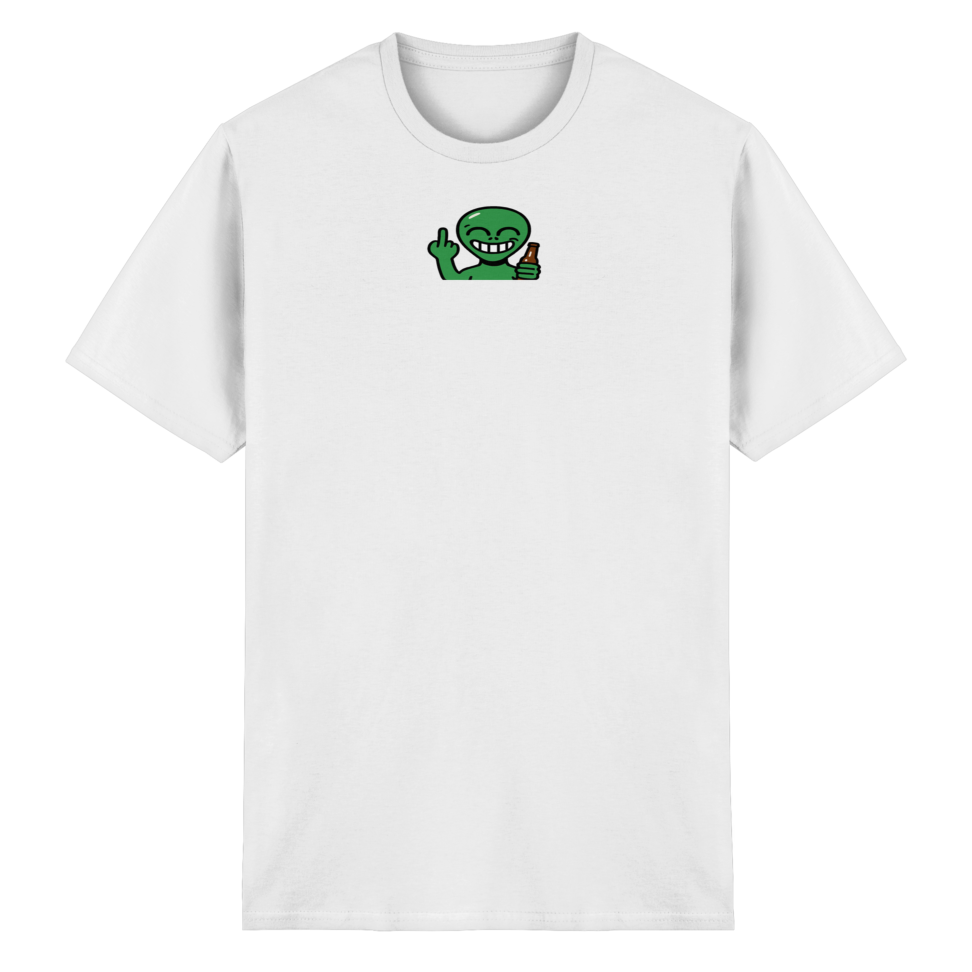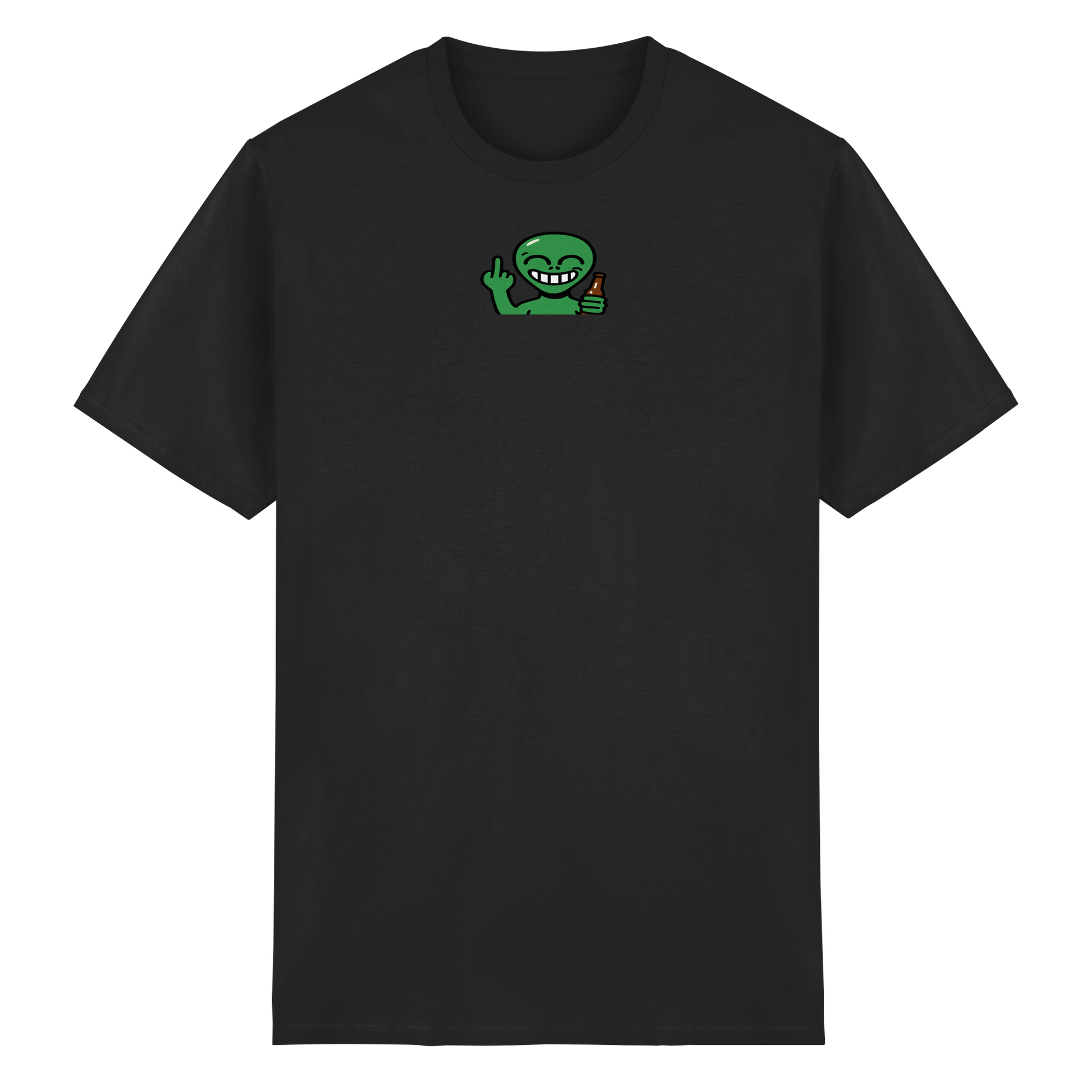 Feiern wie in der Schwerelosigkeit – aber mit klarer Ansage. Dieses Alien hat keine Zeit für belanglose Gespräche. Es will tanzen, fliegen, schwebend Grenzen setzen. Stylisch, spooky und mit interstellarer Attitüde. Wenn du auf der Erde feiern musst, aber mit der Coolness von Proxima Centauri. Trag es, wenn dein Space privat ist – auch auf Partys. Ein Fingerzeig direkt aus der Galaxie „Nicht dein Business“.