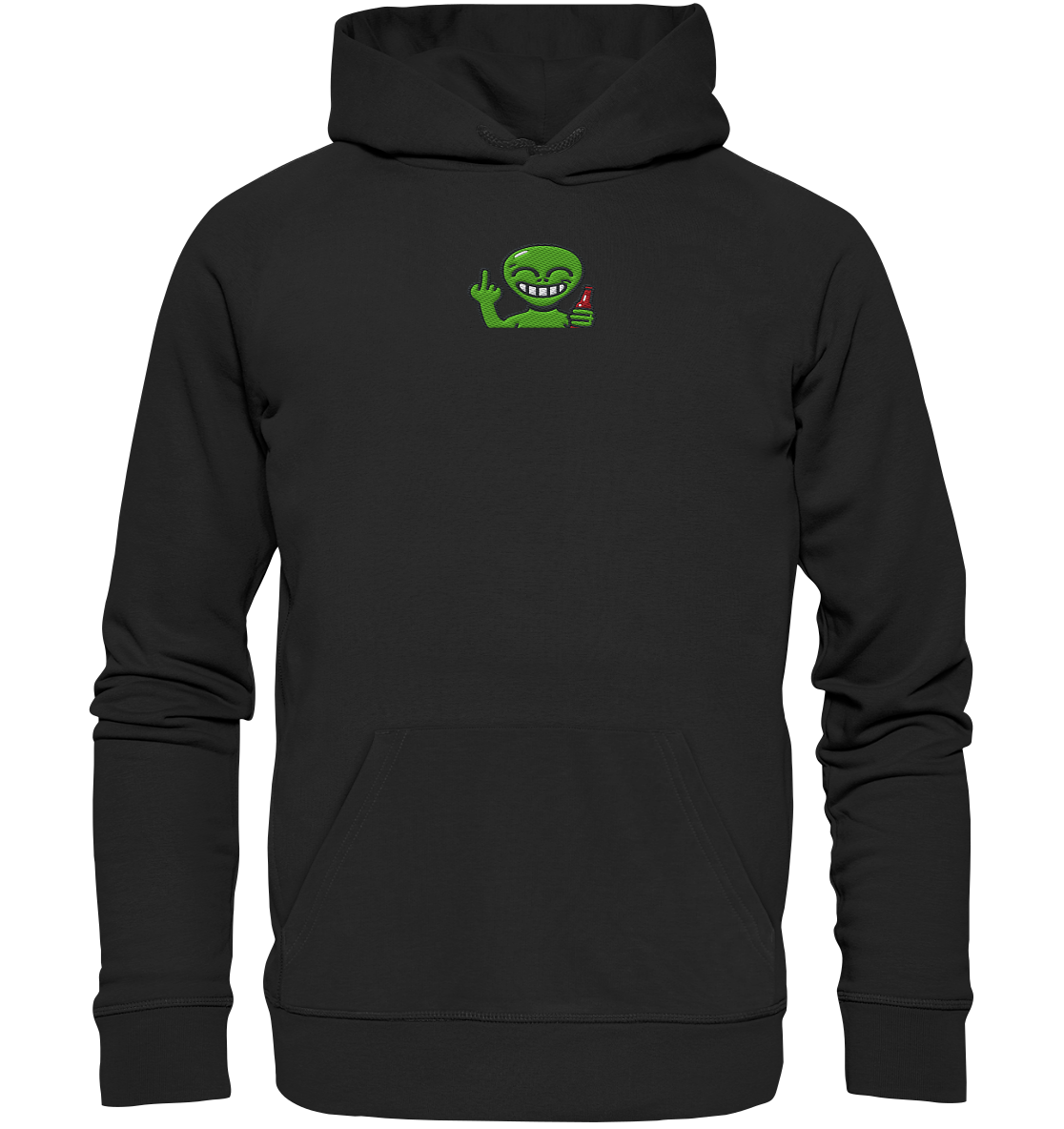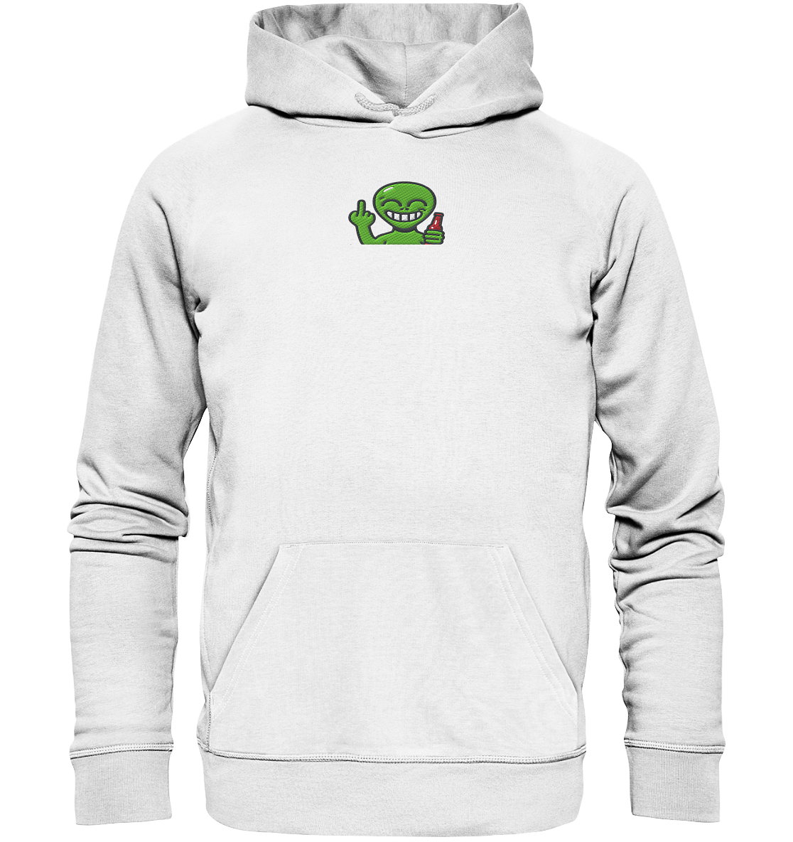 Alien mit Mittelfinger – Cosmic Party, irdischer Finger - Organic Hoodie (Stick)