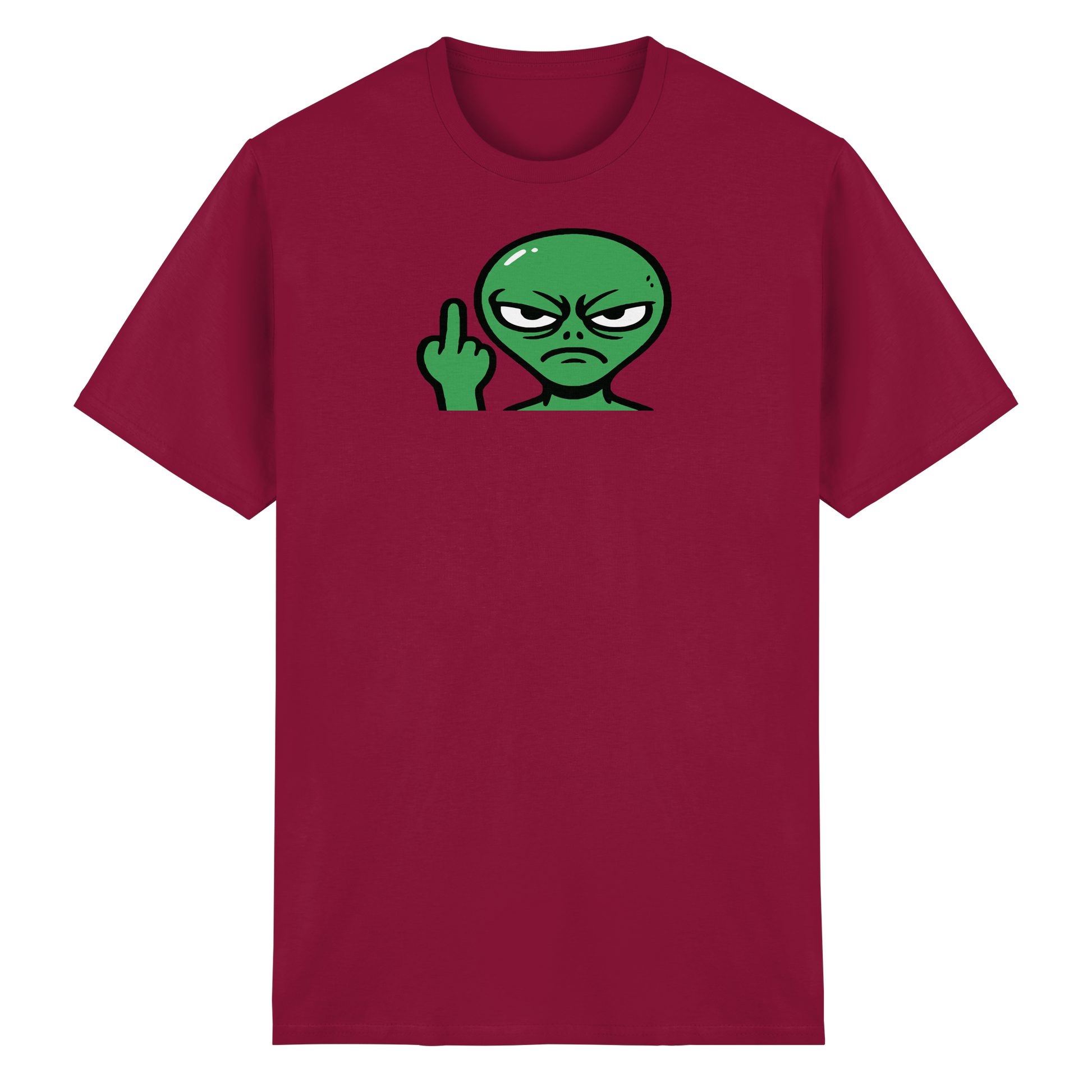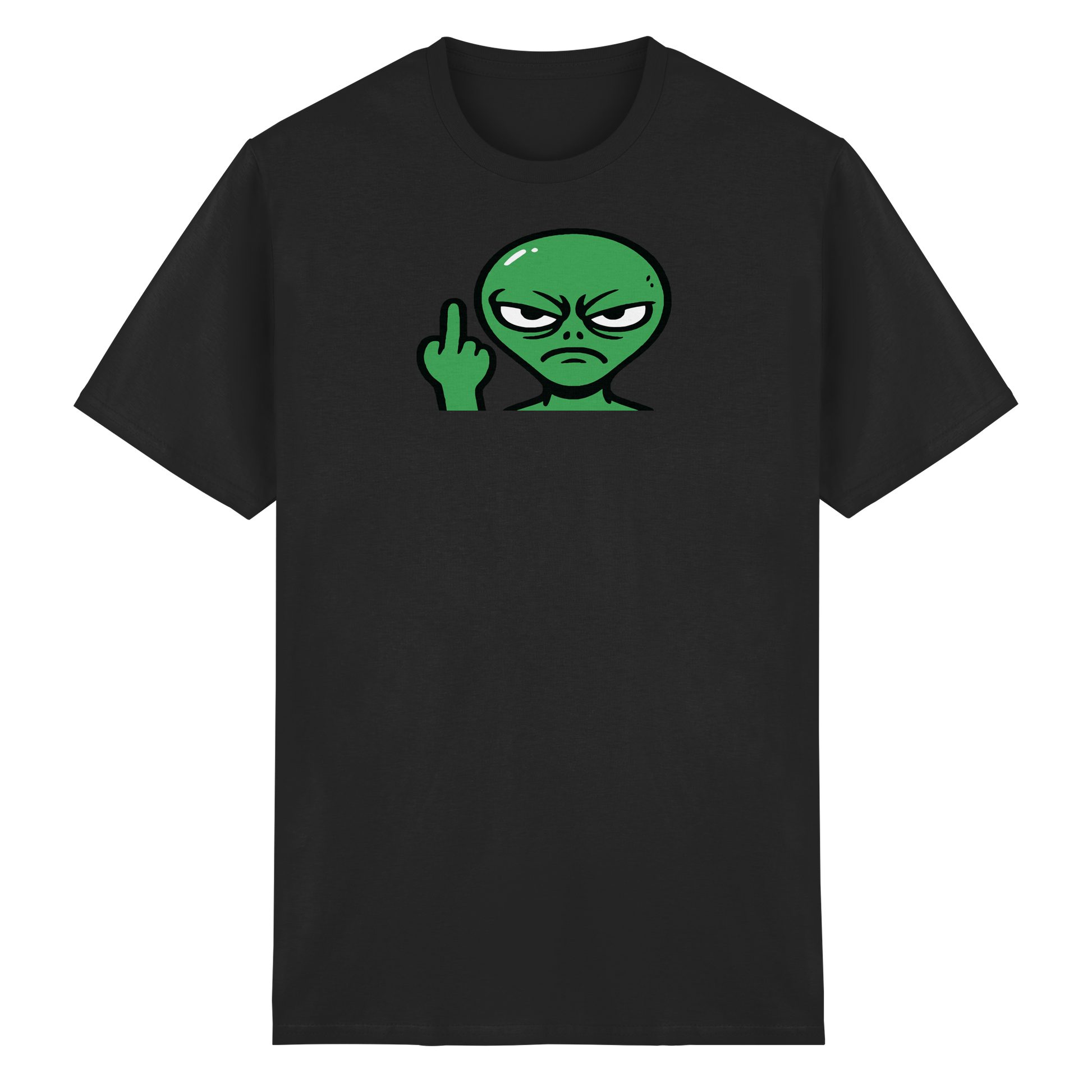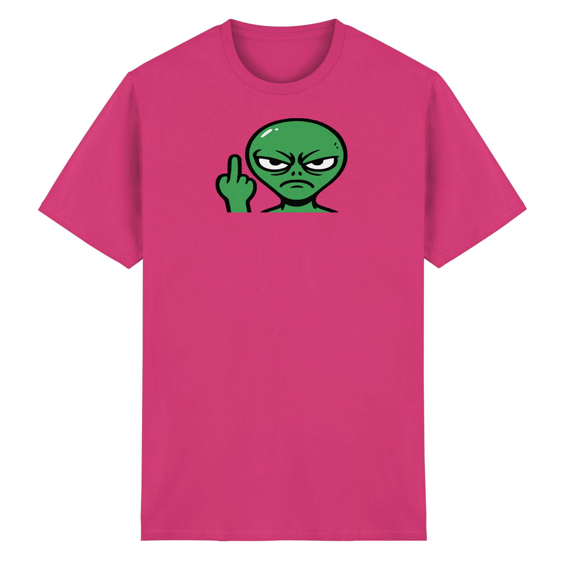 Gelandet, gesehen, bereut – dieses Alien sagt, was du denkst. Ein Mittelfinger, ein müder Blick – der Ausdruck von kosmischer Enttäuschung. Dieses Motiv schreit nicht, es flüstert: „Ich war höflich, aber ihr habt’s vergeigt.“ Ideal für alle, die sich fremd fühlen – und das mit Würde tragen. Kein Raumschiff, kein Trost, nur klare Haltung in Neon. Trag es bei Frust, beim Pendeln oder im Wartezimmer der Existenz. Denn auch Aliens brauchen manchmal ein bisschen Abstand.