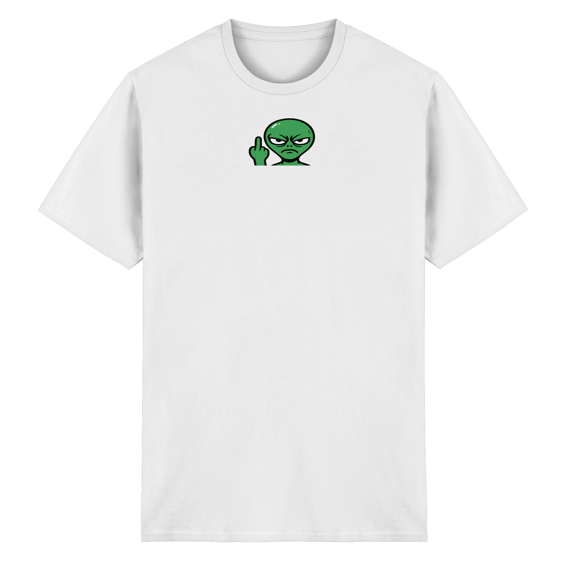 Gelandet, gesehen, bereut – dieses Alien sagt, was du denkst. Ein Mittelfinger, ein müder Blick – der Ausdruck von kosmischer Enttäuschung. Dieses Motiv schreit nicht, es flüstert: „Ich war höflich, aber ihr habt’s vergeigt.“ Ideal für alle, die sich fremd fühlen – und das mit Würde tragen. Kein Raumschiff, kein Trost, nur klare Haltung in Neon. Trag es bei Frust, beim Pendeln oder im Wartezimmer der Existenz. Denn auch Aliens brauchen manchmal ein bisschen Abstand.