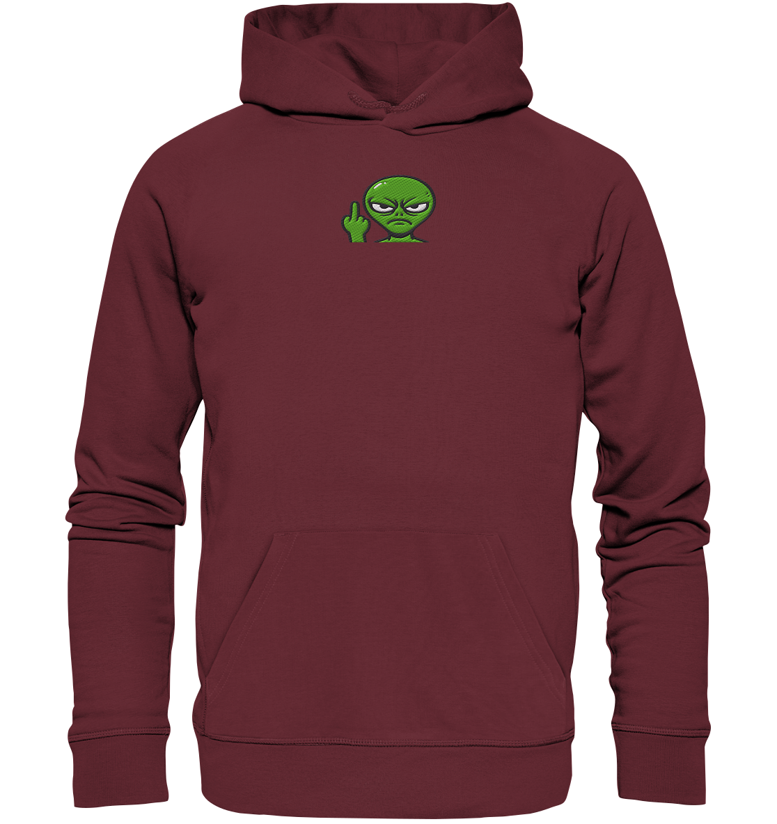 Alien mit Mittelfinger – Erdleben ist kein Ponyhof - Organic Hoodie (Stick)