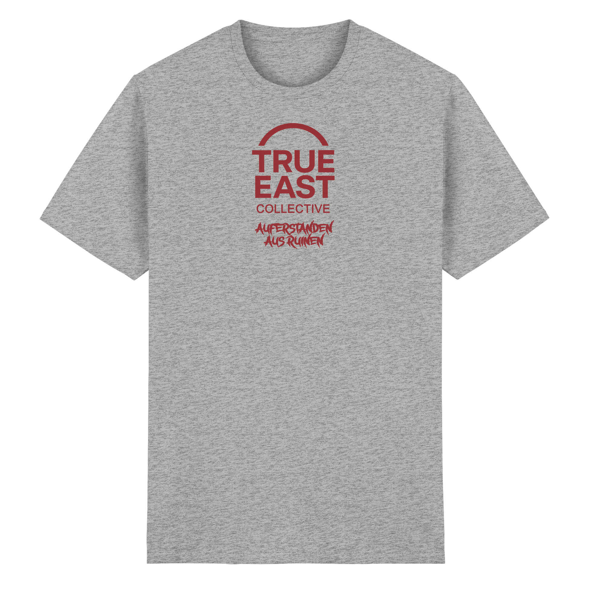 ✔️ Schriftzug „Auferstanden aus Ruinen“ kombiniert mit True East Logo – schlicht & aussagekräftig