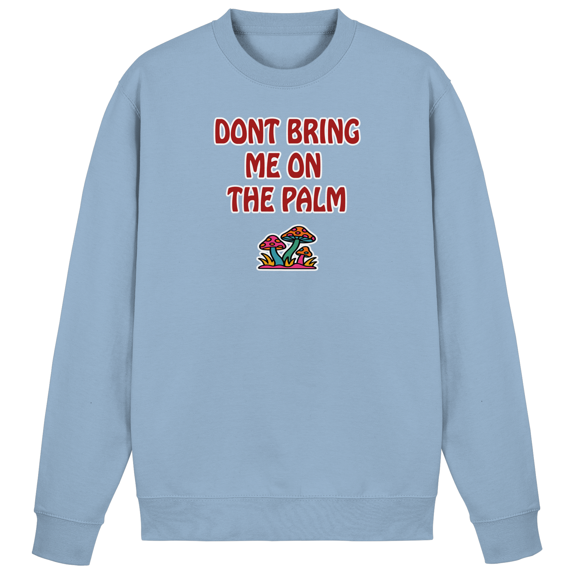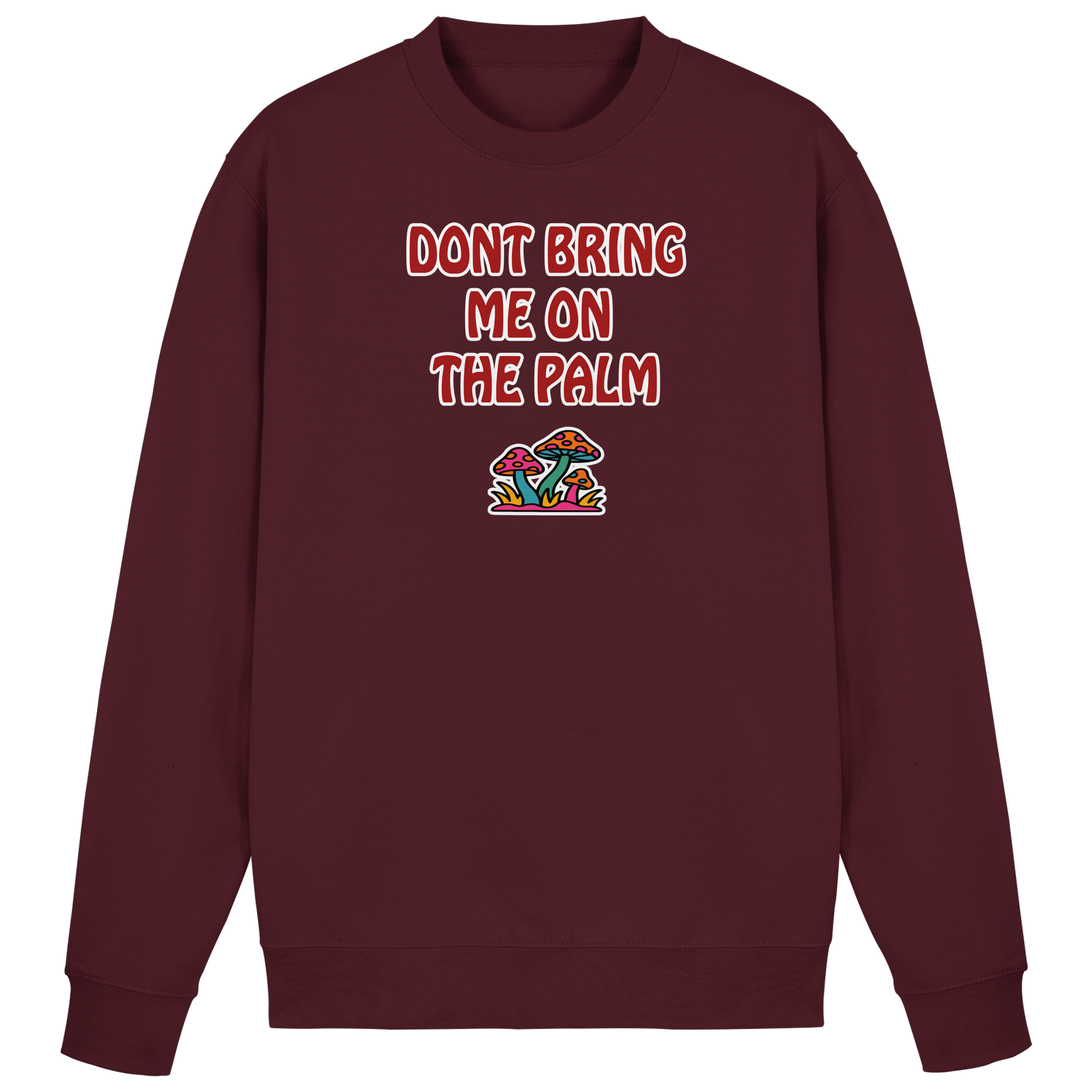 Mit diesem Motiv machst du sofort klar: „Don't bring me on the palm“ – sprich, mach keinen Stress. Die psychedelischen Pilze darunter sehen vielleicht süß aus, aber das hier ist dein visuelles „Lass mich in Ruhe“-Schild. Ob im Alltag, im Club oder beim nächsten Festival – dieses Design schreit: Ich bin gechillt, bleib du’s auch. Die Message ist so klar wie subtil: Wer dir auf die Palme geht, darf sich gleich selbst wieder runterholen. Die Pilze stehen dabei nicht nur für einen schrägen Trip, sondern auch für dein persönliches Mindset: Peace, Flow und maximaler Vibe, bitte ohne Drama und Diskussionen. Dieses Shirt ist perfekt für alle, die lieber tief durchatmen, als tief einatmen – und dabei trotzdem ein Statement setzen wollen. Ein Must-have für Menschen, die verstanden haben, dass die coolsten Moves oft die entspanntesten sind.