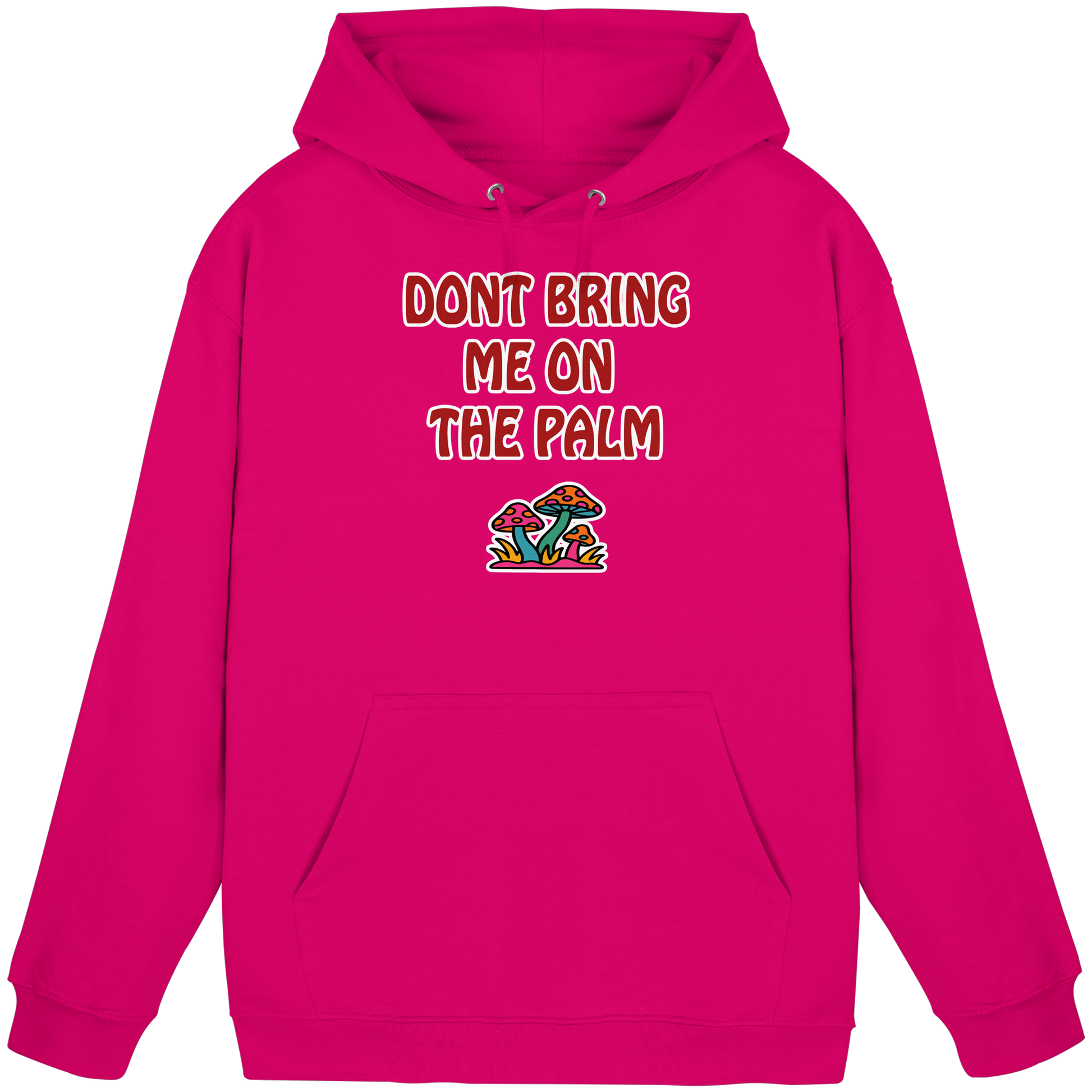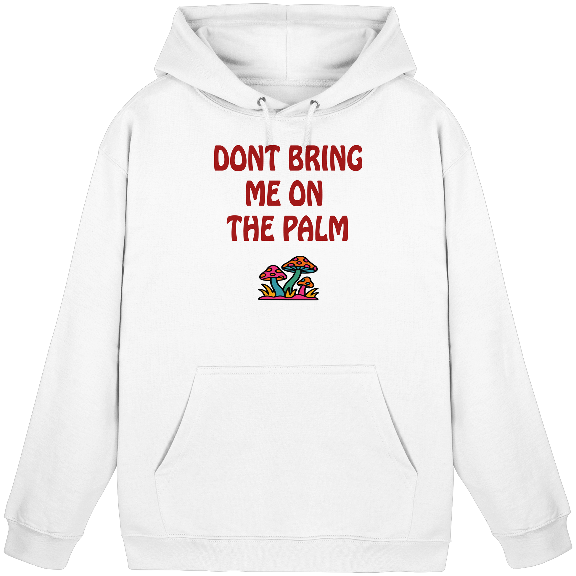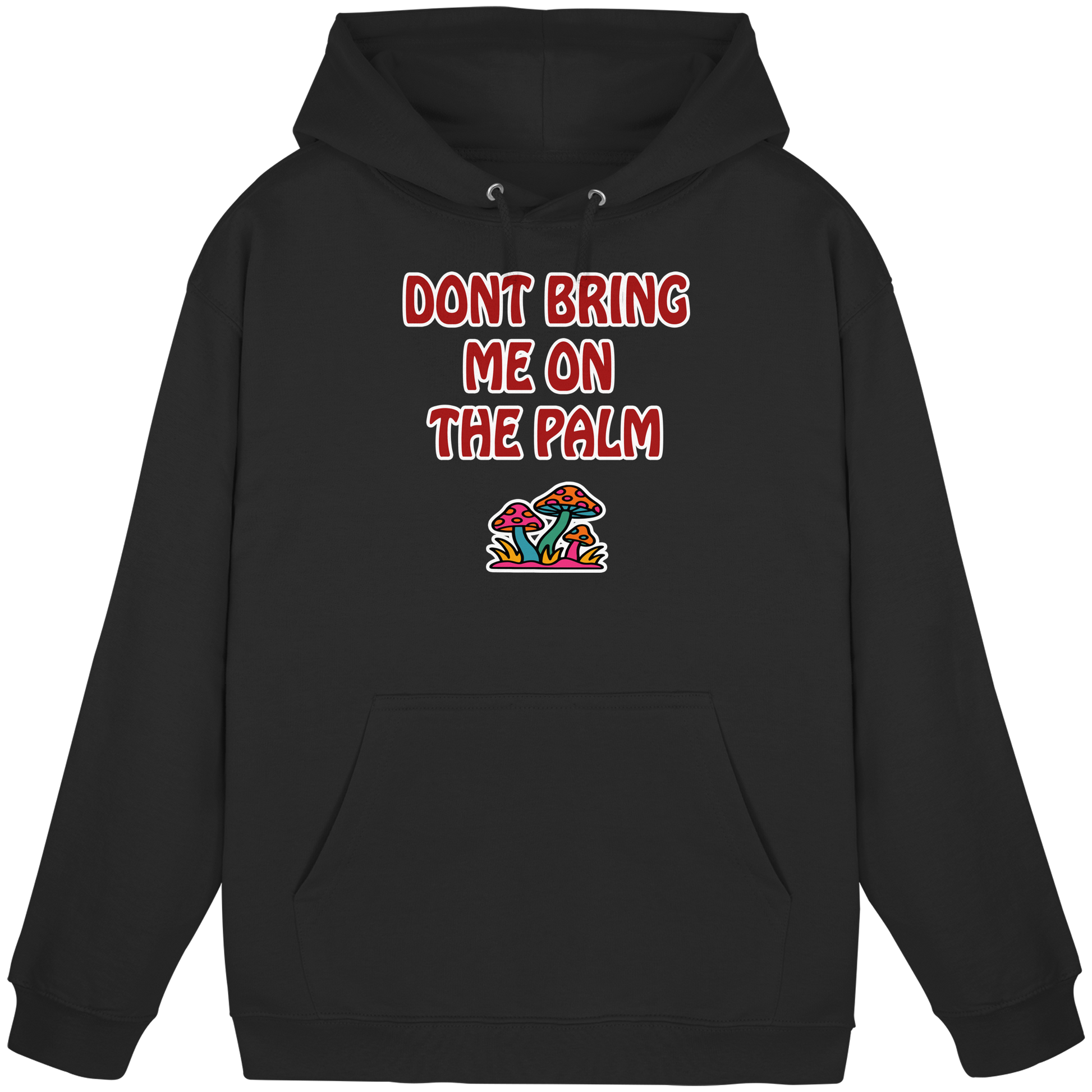Mit diesem Motiv machst du sofort klar: „Don't bring me on the palm“ – sprich, mach keinen Stress. Die psychedelischen Pilze darunter sehen vielleicht süß aus, aber das hier ist dein visuelles „Lass mich in Ruhe“-Schild. Ob im Alltag, im Club oder beim nächsten Festival – dieses Design schreit: Ich bin gechillt, bleib du’s auch. Die Message ist so klar wie subtil: Wer dir auf die Palme geht, darf sich gleich selbst wieder runterholen. Die Pilze stehen dabei nicht nur für einen schrägen Trip, sondern auch für dein persönliches Mindset: Peace, Flow und maximaler Vibe, bitte ohne Drama und Diskussionen. Dieses Shirt ist perfekt für alle, die lieber tief durchatmen, als tief einatmen – und dabei trotzdem ein Statement setzen wollen. Ein Must-have für Menschen, die verstanden haben, dass die coolsten Moves oft die entspanntesten sind.