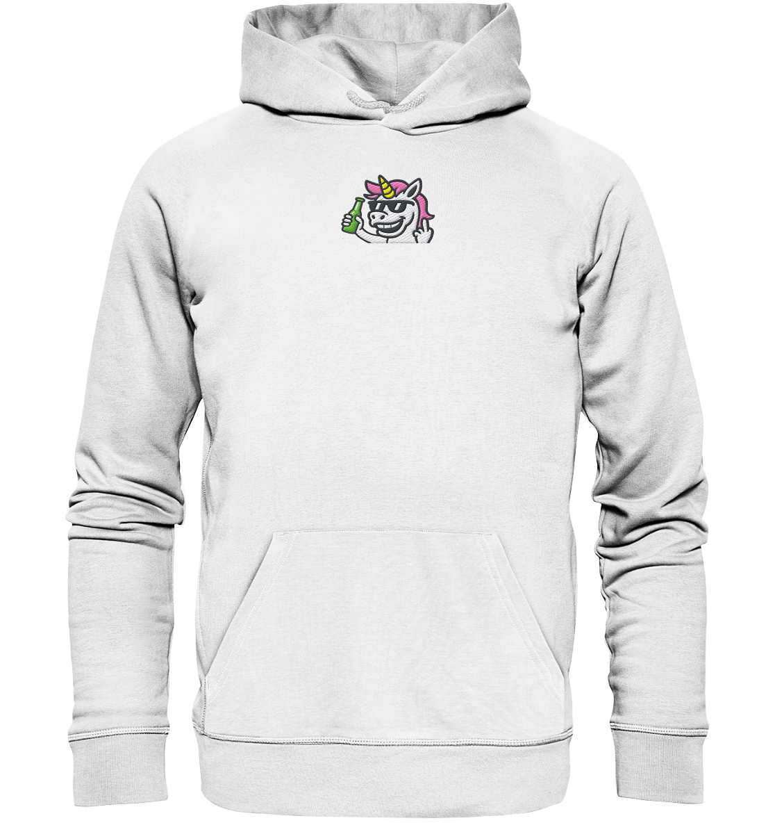 Einhorn mit Mittelfinger – Im Partymodus scheißt’s auf Glitzerregeln - Organic Hoodie (Stick)