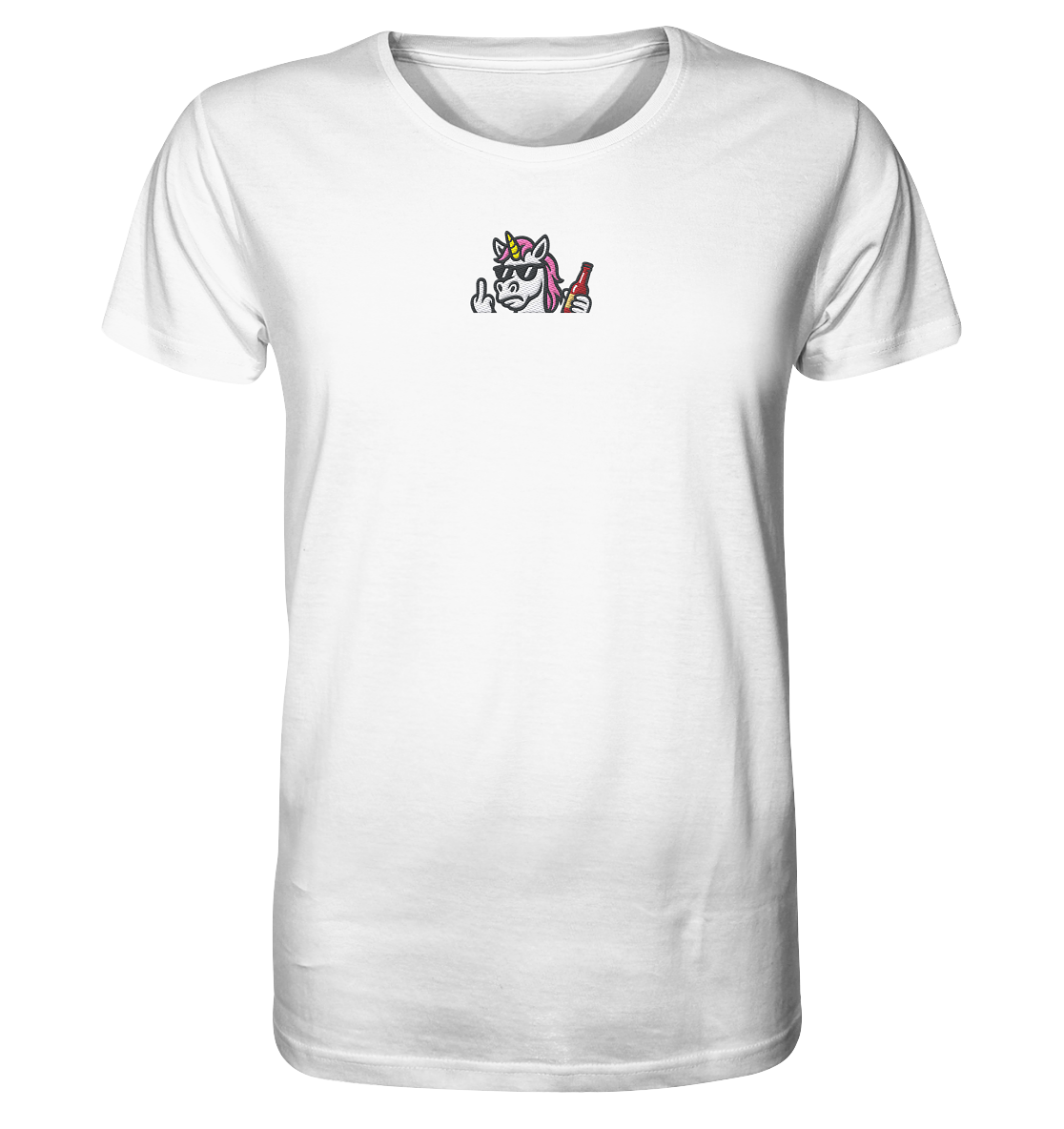 Einhorn mit Mittelfinger – Rave-Rainbow in Rebellion - Organic Shirt (Stick)