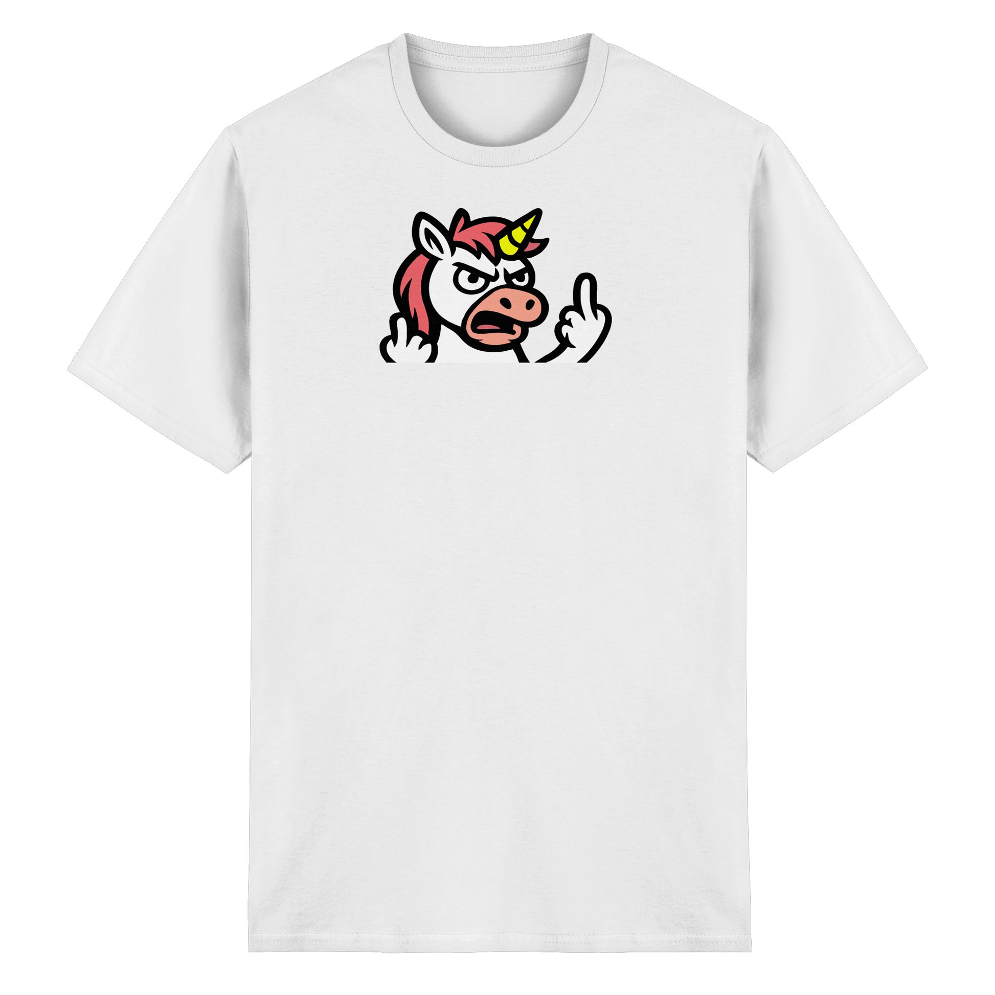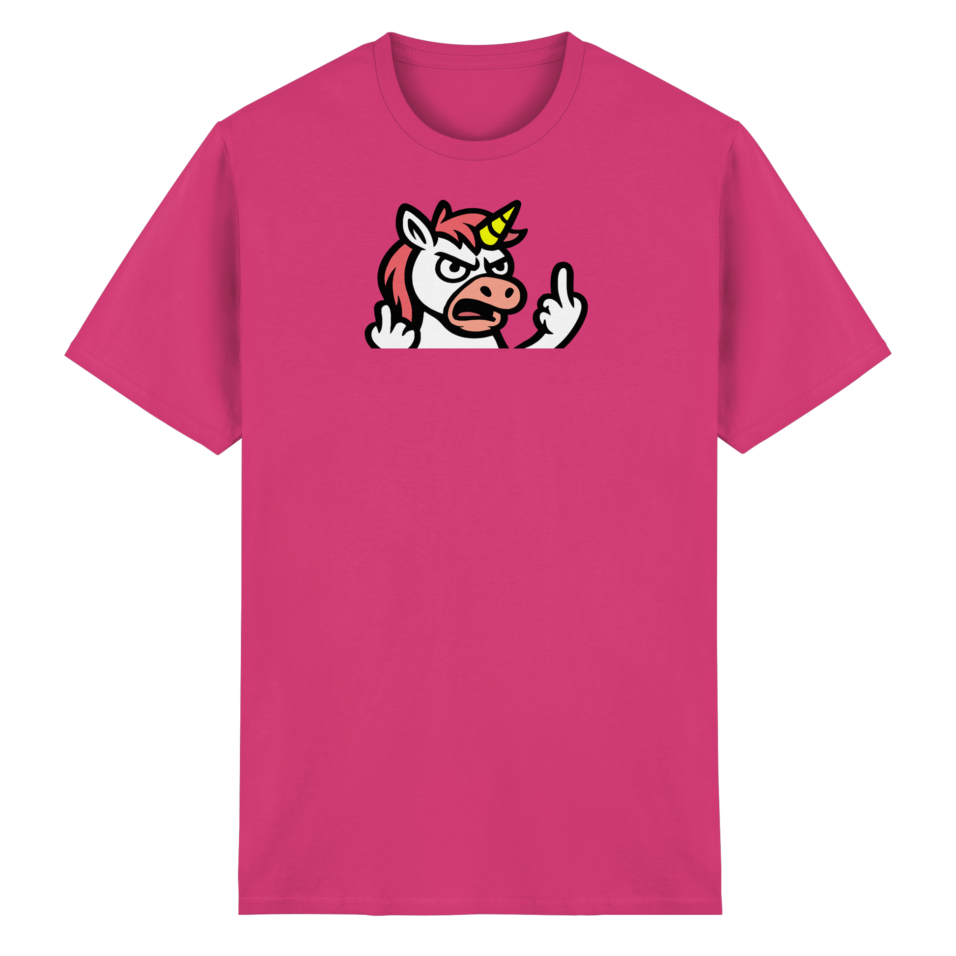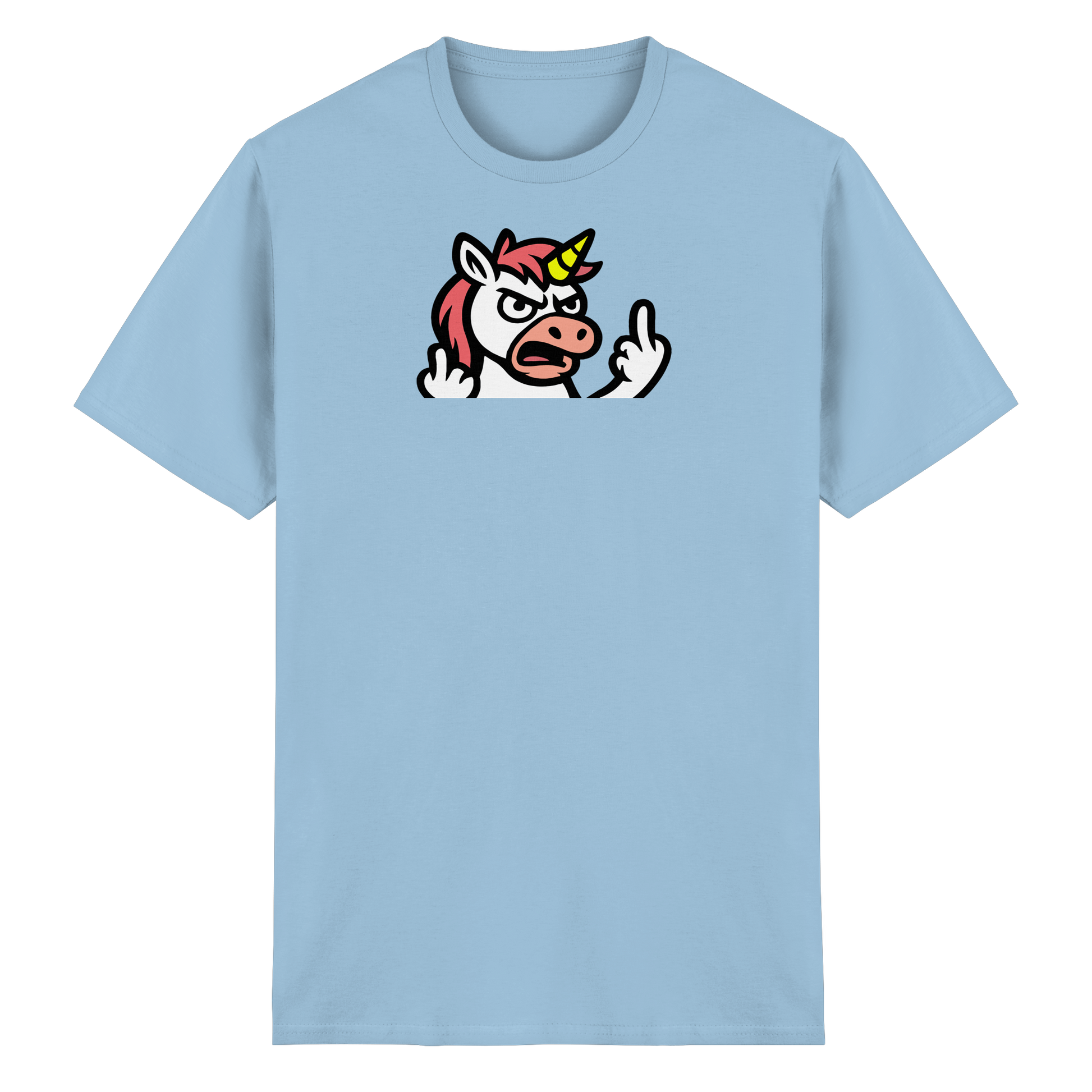 Das süße Fabelwesen von gestern ist heute dein persönlicher Schutzengel mit klarer Kante. Keine Umarmungen, keine Herzlichkeit – nur ein hocherhobener Finger voller Wahrheit. Es sagt das, was du oft denkst, aber nicht aussprichst – mit einer Prise Regenbogenrotz. Ironisch, respektlos und himmlisch befreiend. Für alle, denen die rosarote Brille irgendwann geplatzt ist. Dieses Shirt sagt: „Ich bin magisch – aber nicht verfügbar.“ Und wenn’s dir zu bunt wird, schau auf das Horn und bleib gelassen.
