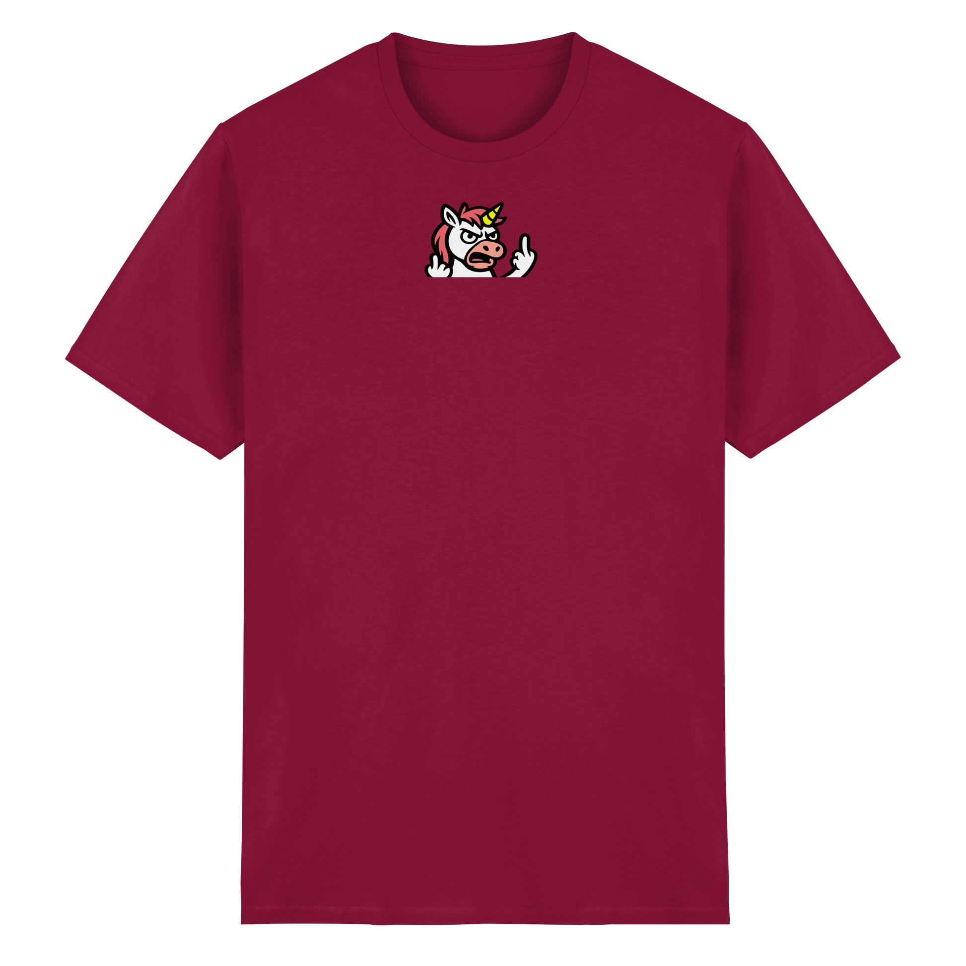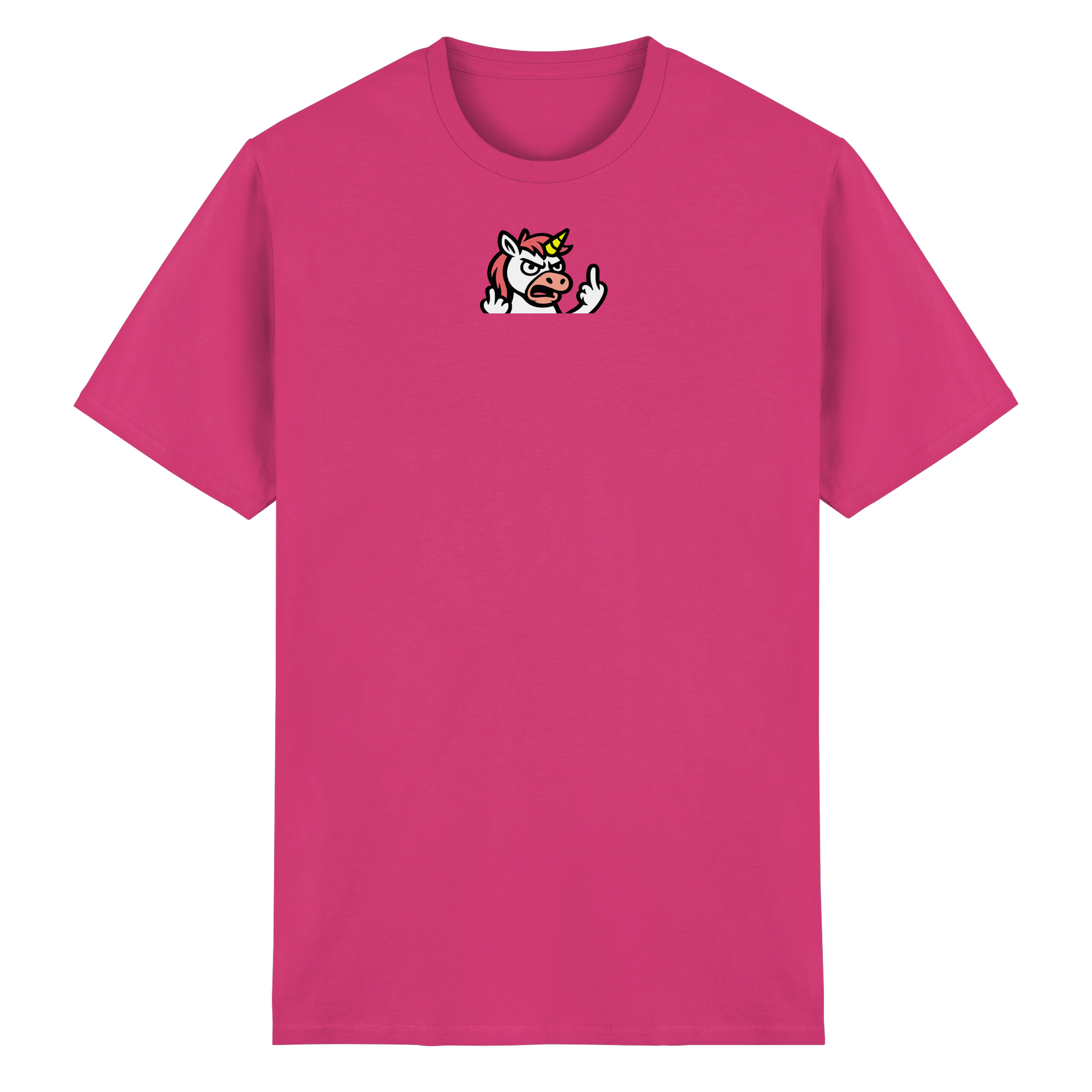 Das süße Fabelwesen von gestern ist heute dein persönlicher Schutzengel mit klarer Kante. Keine Umarmungen, keine Herzlichkeit – nur ein hocherhobener Finger voller Wahrheit. Es sagt das, was du oft denkst, aber nicht aussprichst – mit einer Prise Regenbogenrotz. Ironisch, respektlos und himmlisch befreiend. Für alle, denen die rosarote Brille irgendwann geplatzt ist. Dieses Shirt sagt: „Ich bin magisch – aber nicht verfügbar.“ Und wenn’s dir zu bunt wird, schau auf das Horn und bleib gelassen.