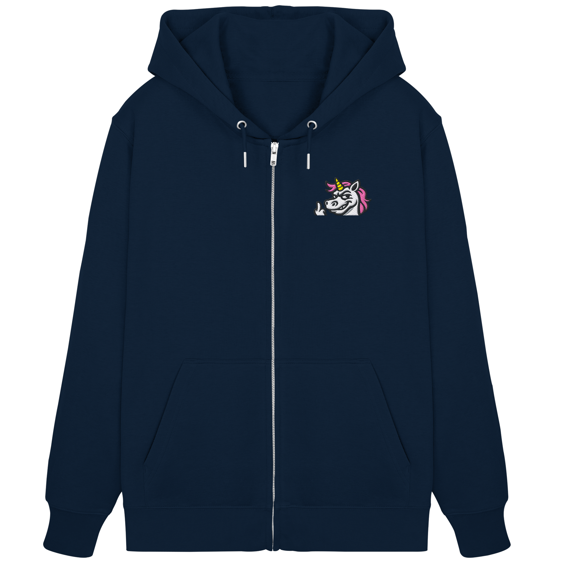 Einhorn mit Mittelfinger – Zu süß zum Ertragen, zu frech zum Ignorieren - Organic Zipper (Stick)