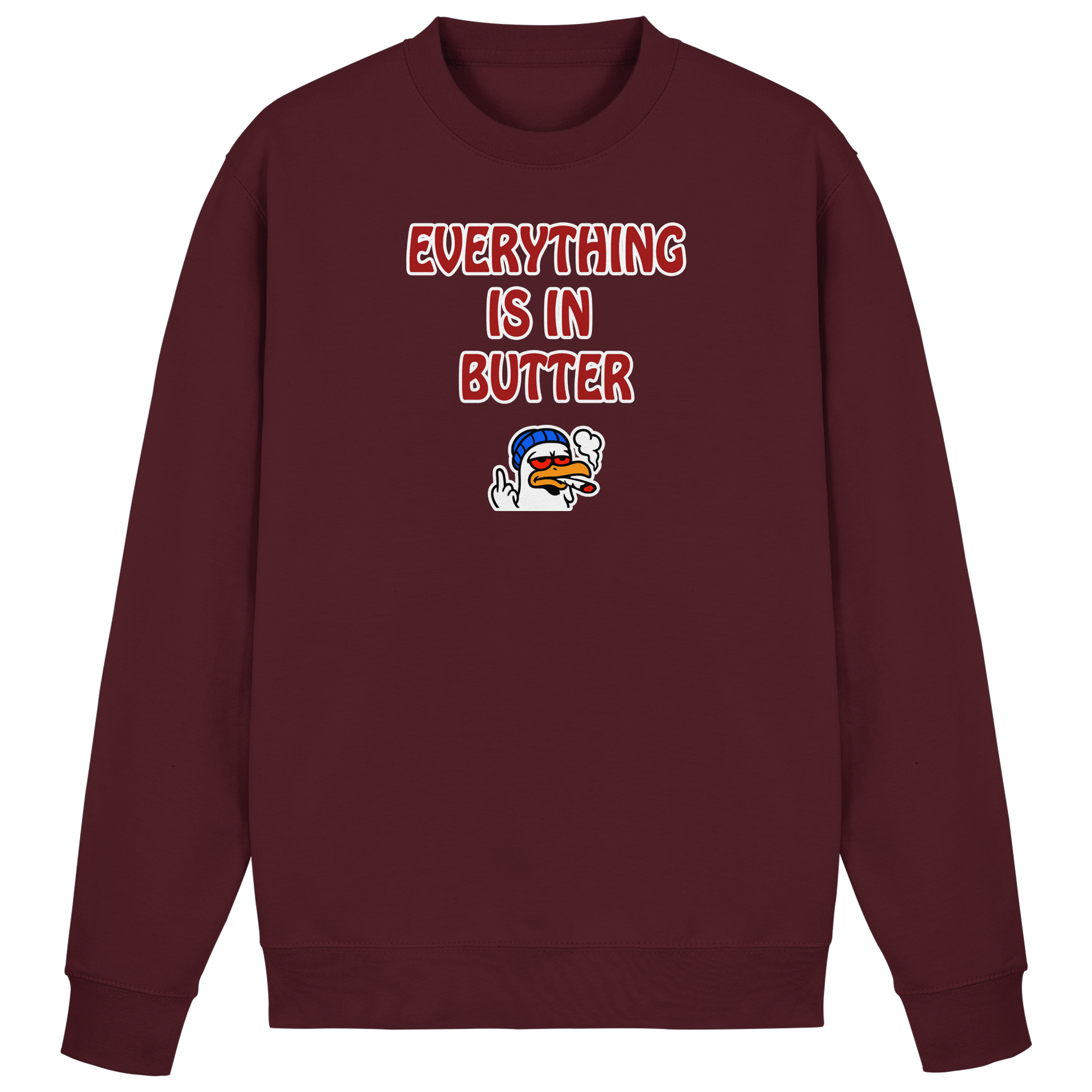Mit diesem Motiv bist du der wandelnde Inbegriff von „Everything is in butter“ – alles easy, alles smooth, alles läuft wie geschmiert. Die kiffende Möwe darunter verkörpert genau diesen Vibe: ein bisschen high, ein bisschen drüber, aber komplett unbeeindruckt vom Chaos drumherum. Ob Großstadtstress, Festivalmatsch oder Montagsmeeting – dieses Design sagt ganz klar: Chill, Bro. Alles ist im Lot. Die Möwe ist dein spirit animal, das dir zuflüstert: „Keine Panik, alles wird gut … irgendwann. Vielleicht.“ Dieses Motiv ist der perfekte Mix aus Ironie und Entspannung: Es macht klar, dass du weder Drama noch Deadlines jagst – nur gute Vibes und den nächsten Snack. Wer dich darin sieht, weiß sofort: Hier kommt Zen in Vogelform.