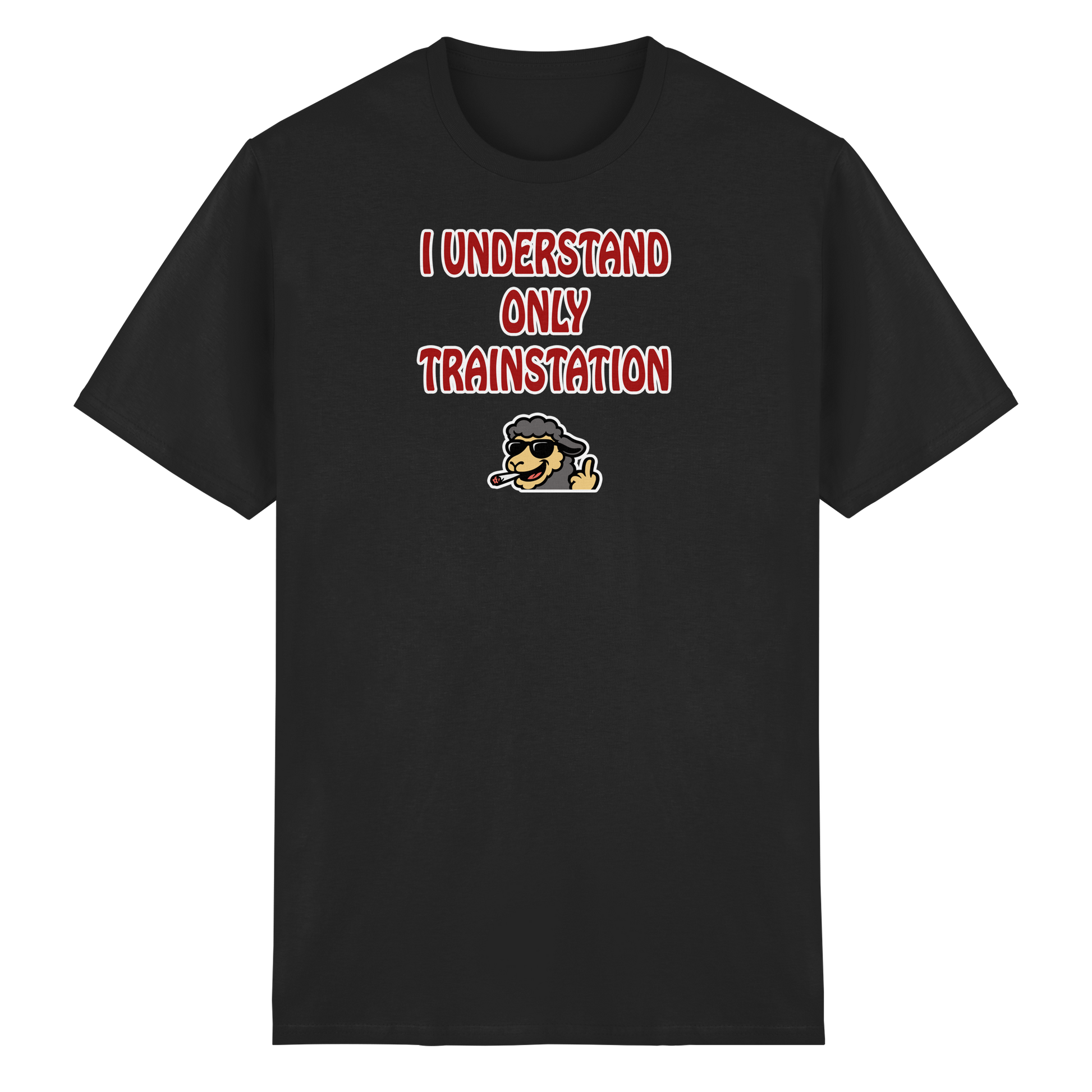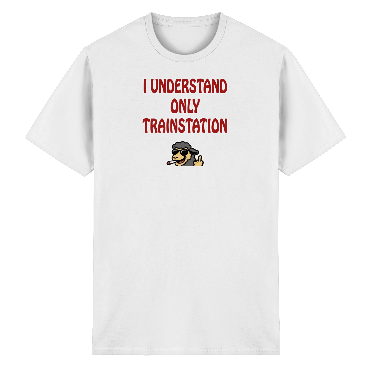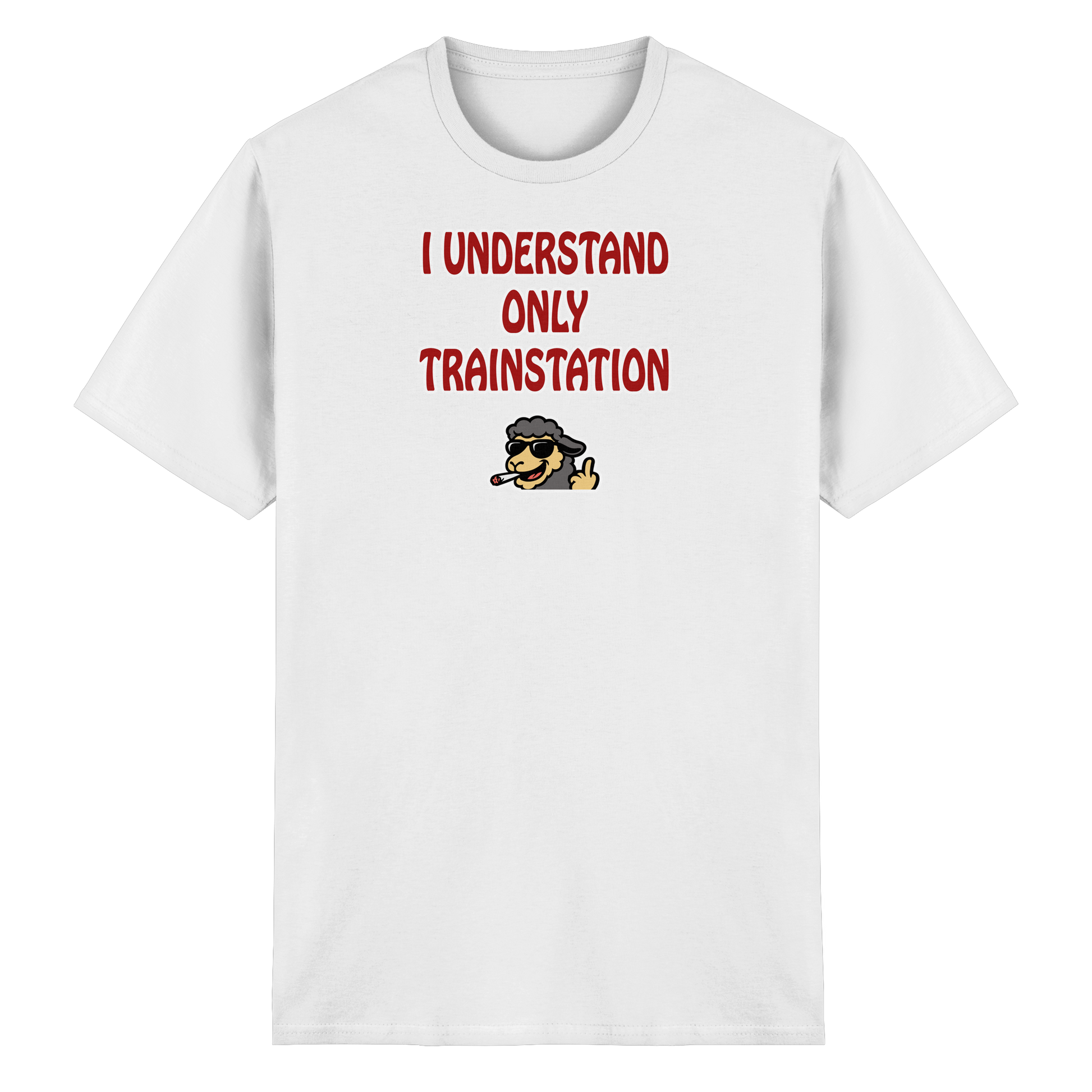 Mit diesem Motiv bist du die menschgewordene Verwirrung: „I understand only trainstation“ – die legendäre, herrlich schiefe Übersetzung von „Ich versteh nur Bahnhof“. Darunter ein kiffendes Schaf, das so tiefenentspannt ist, dass es vermutlich selbst bei einem Bahnhofs-Chaos denkt: Alles gut, Bruder. Dieses Design ist ein Statement für alle Momente, in denen du einfach nur danebenstehst, verständnislos guckst und dir denkst: Was zum Teufel passiert hier gerade? Das Schaf ist dein innerer Geistführer in solchen Situationen – total gechillt, leicht high und absolut unbeeindruckt vom Wahnsinn der Welt. Ob im Alltag, auf einem Festival oder mitten in einer Diskussion, die du längst aufgegeben hast – dieses Motiv macht klar: Du bist hier, du bist cool, und alles andere … na ja, Bahnhof halt.