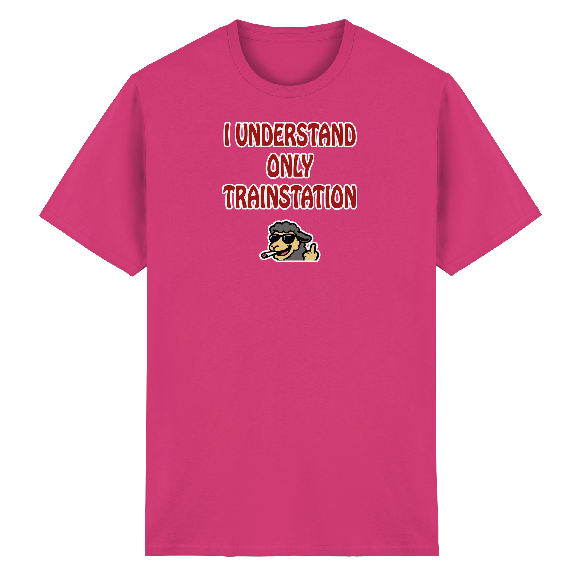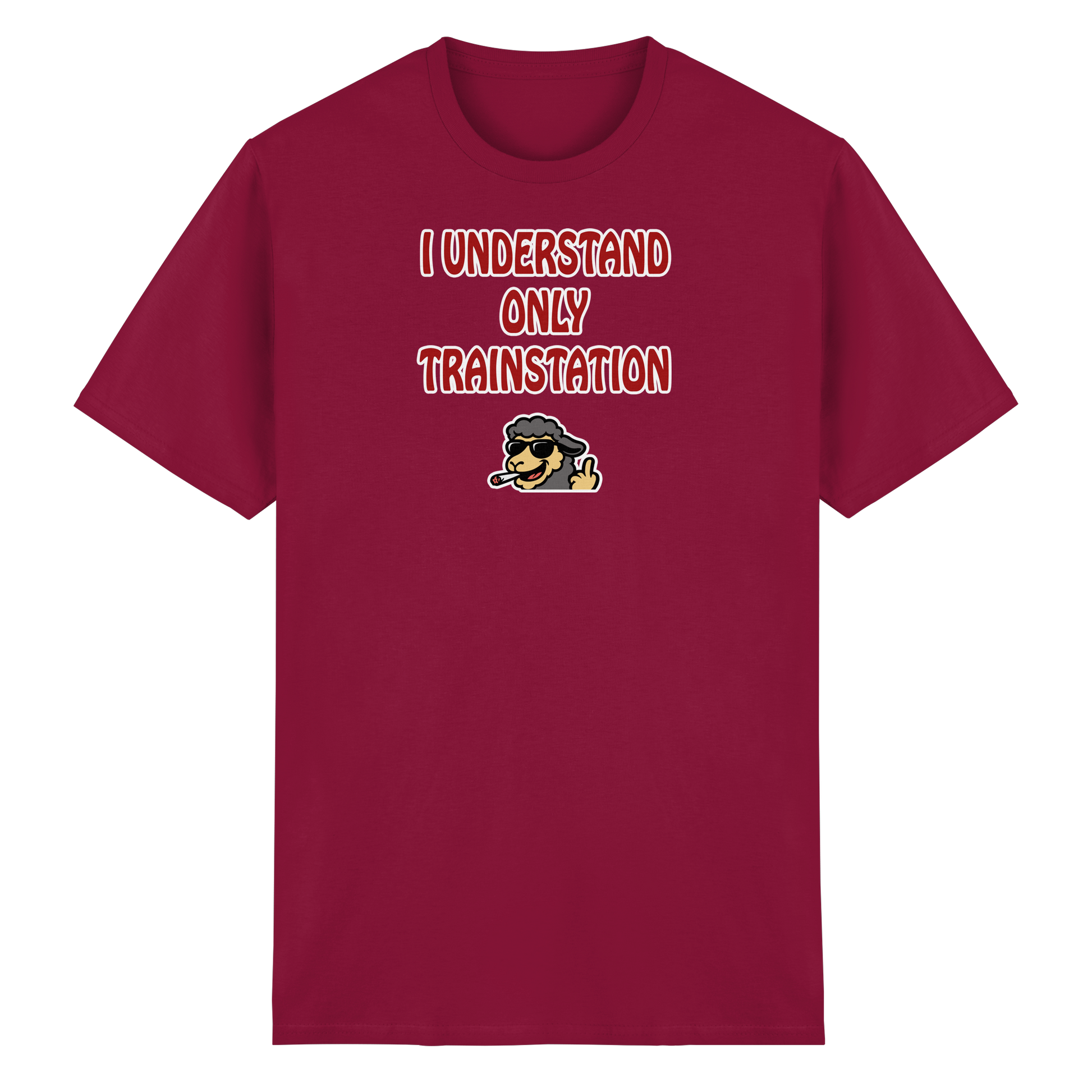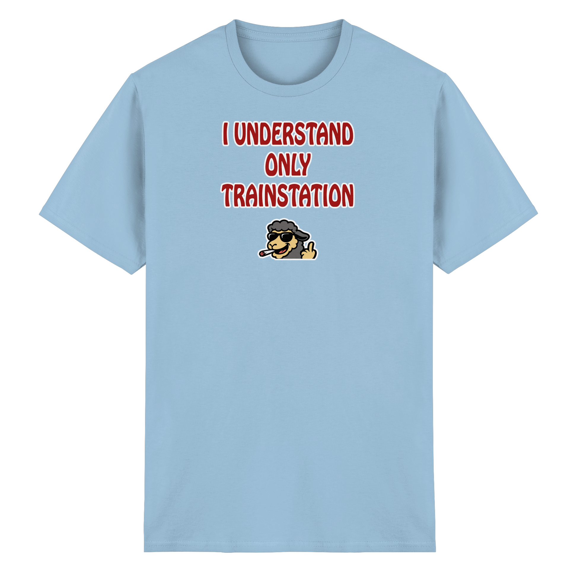 Mit diesem Motiv bist du die menschgewordene Verwirrung: „I understand only trainstation“ – die legendäre, herrlich schiefe Übersetzung von „Ich versteh nur Bahnhof“. Darunter ein kiffendes Schaf, das so tiefenentspannt ist, dass es vermutlich selbst bei einem Bahnhofs-Chaos denkt: Alles gut, Bruder. Dieses Design ist ein Statement für alle Momente, in denen du einfach nur danebenstehst, verständnislos guckst und dir denkst: Was zum Teufel passiert hier gerade? Das Schaf ist dein innerer Geistführer in solchen Situationen – total gechillt, leicht high und absolut unbeeindruckt vom Wahnsinn der Welt. Ob im Alltag, auf einem Festival oder mitten in einer Diskussion, die du längst aufgegeben hast – dieses Motiv macht klar: Du bist hier, du bist cool, und alles andere … na ja, Bahnhof halt.