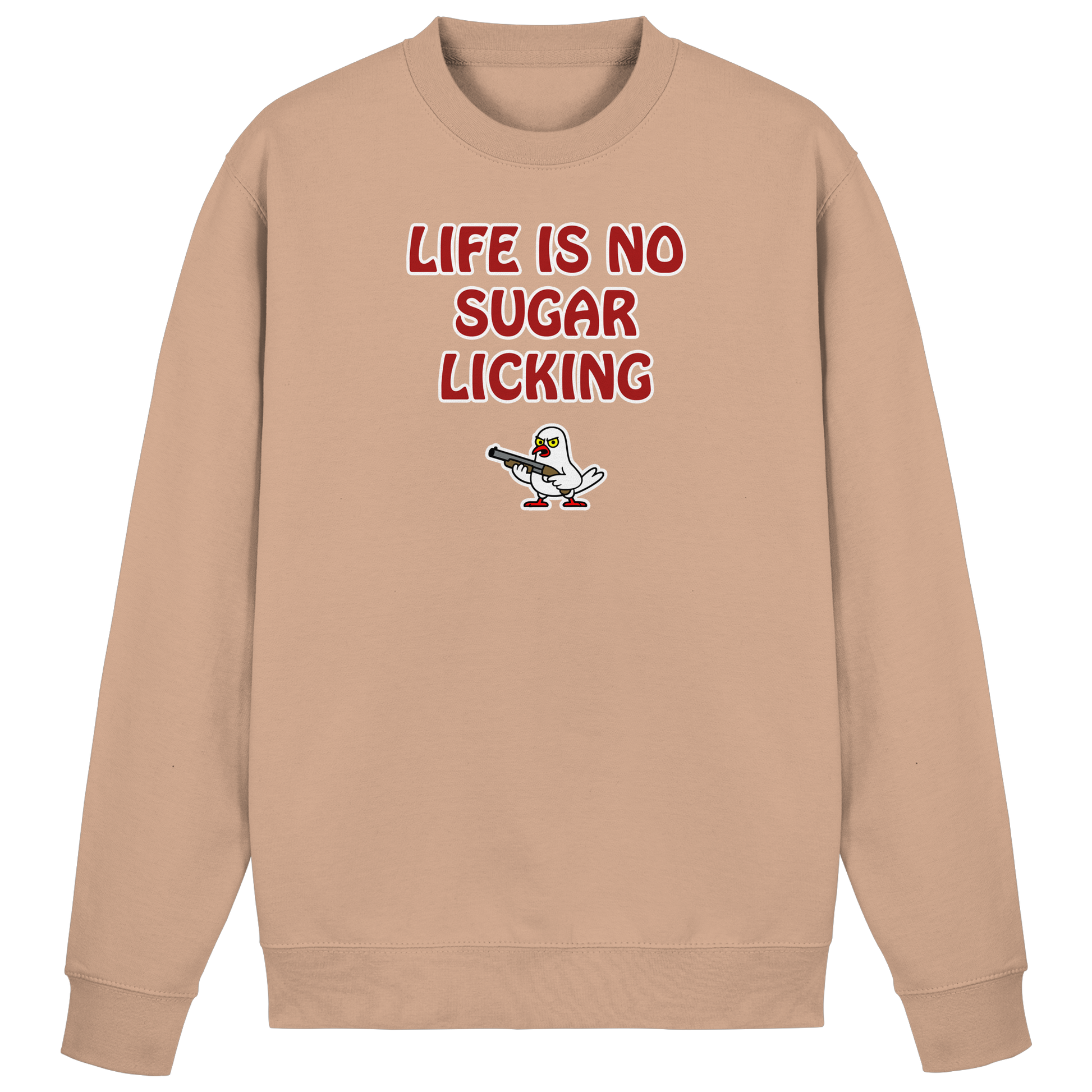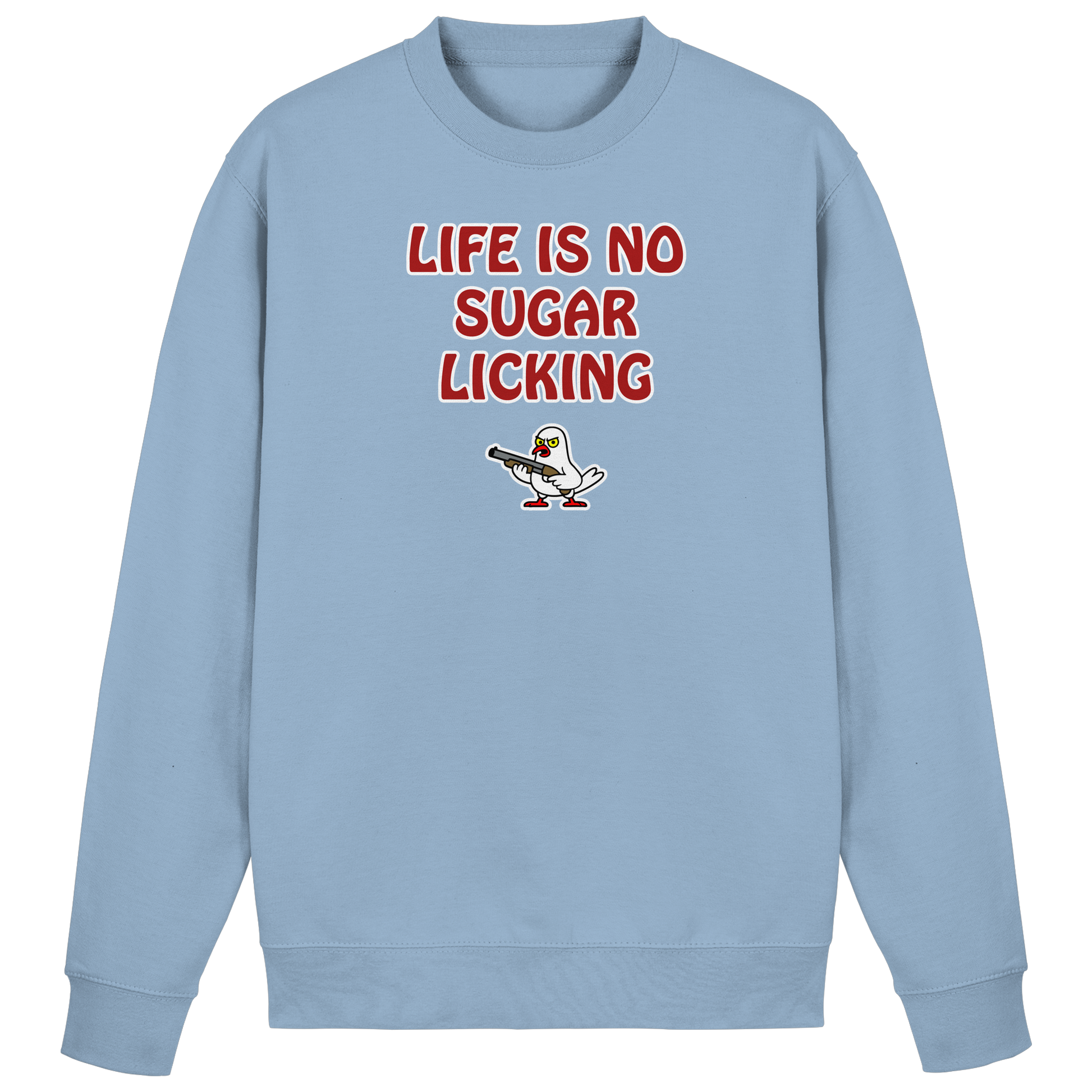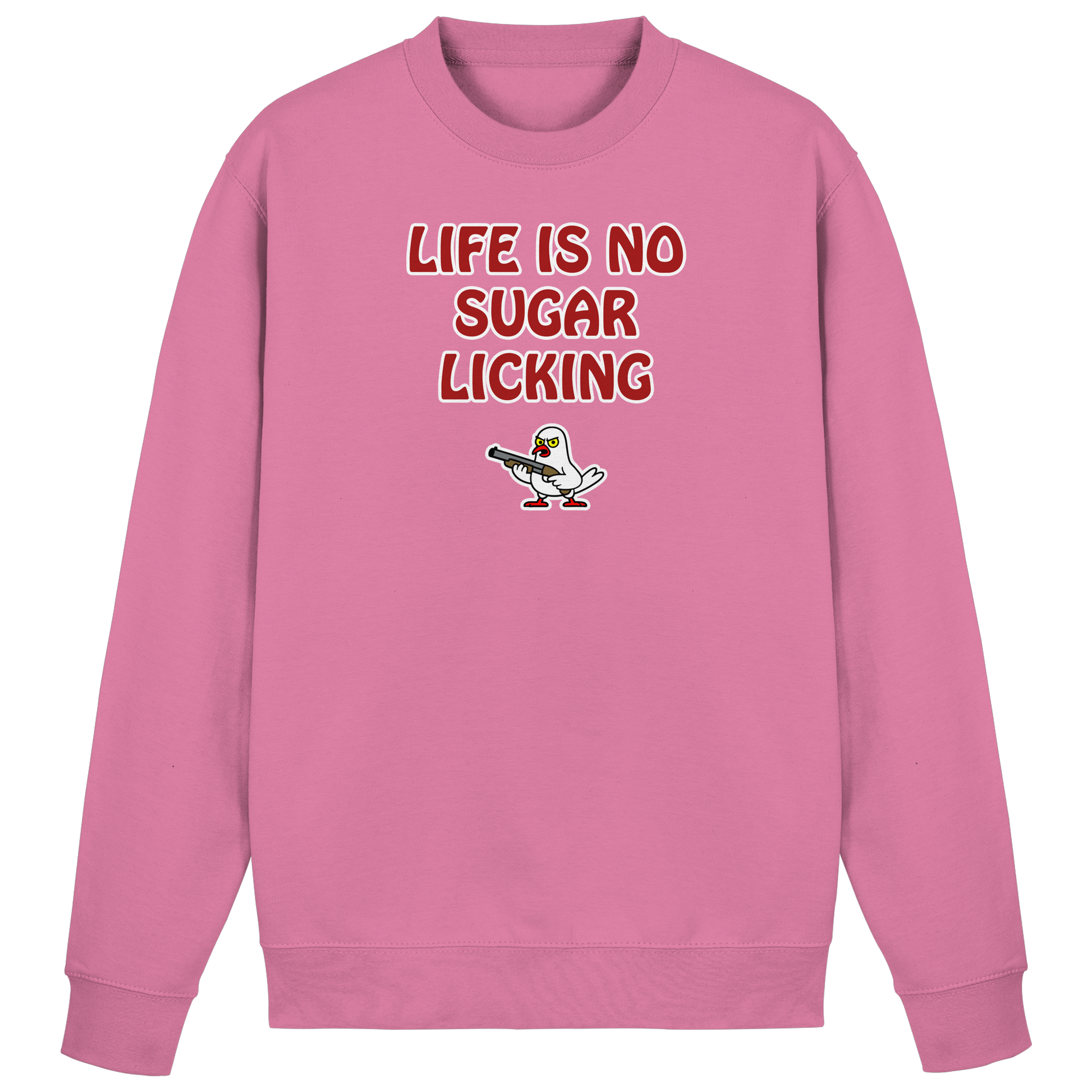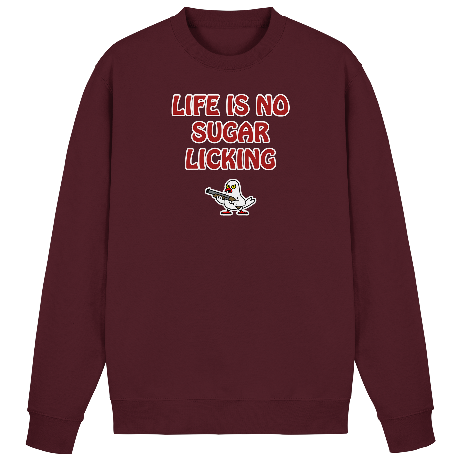 Mit diesem Motiv machst du allen klar: „Life is no sugar licking“ – die genial schiefe Übersetzung von „Das Leben ist kein Zuckerschlecken“. Darunter eine Taube mit Schrotflinte, die aussieht, als hätte sie endgültig genug von romantischen Vorstellungen und jetzt auf Hardcore-Realismus umgestellt. Dieses Design sagt: Ja, das Leben ist hart. Manchmal bist du die Taube, manchmal das Brötchen – aber immer bereit, dich durchzubeißen. Während andere noch hoffen, dass alles von selbst besser wird, hast du schon längst die Flinte im Anschlag … metaphorisch natürlich. Meistens. Ob Montagmorgen, WG-Küchendrama oder Festival-Wetter, das dich komplett im Stich lässt – mit diesem Motiv trägst du deinen persönlichen „Deal with it“-Moment auf der Brust. Und ganz ehrlich: Niemand diskutiert mit einer Taube, die bewaffnet ist.