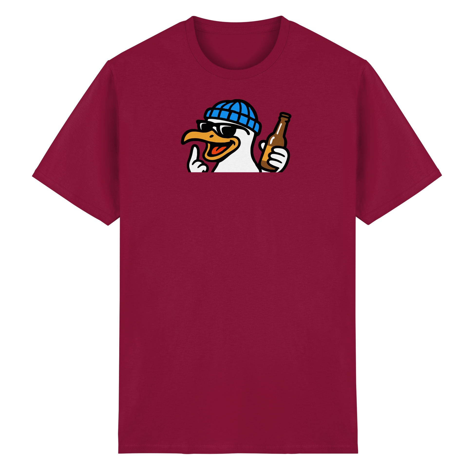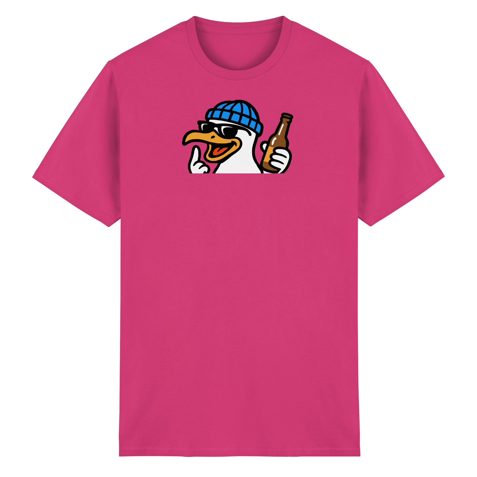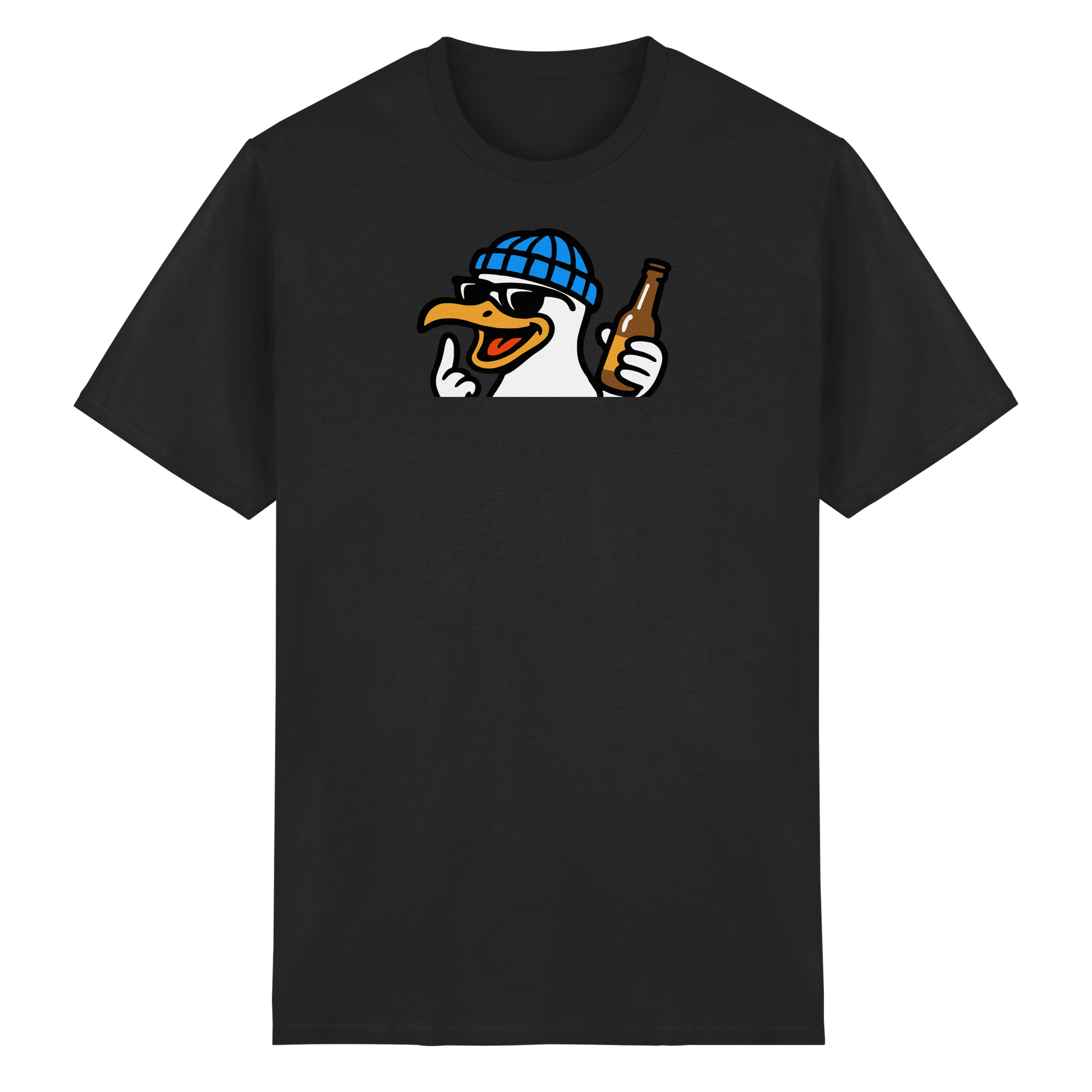 Wenn diese Möwe auf dem Shirt erscheint, wird der Abend nicht harmlos. Mit Schnaps im Blut, Beat im Herzen und einem ausgestreckten Flügel macht sie klar: Heute wird nicht diskutiert – heute wird eskaliert. Sie fliegt durch Clubs, Bars und WG-Küchen wie ein anarchischer Party-Prophet. Wer sie sieht, weiß: Lass dein Urteil stecken, sie ist auf Mission. Keine Ausreden, keine Smalltalk-Sperenzchen – nur Bass, Beats und bitterböser Blick. Wer mit dieser Möwe kommt, bringt keine gute Laune – sondern Party mit Kante und Konterbier.