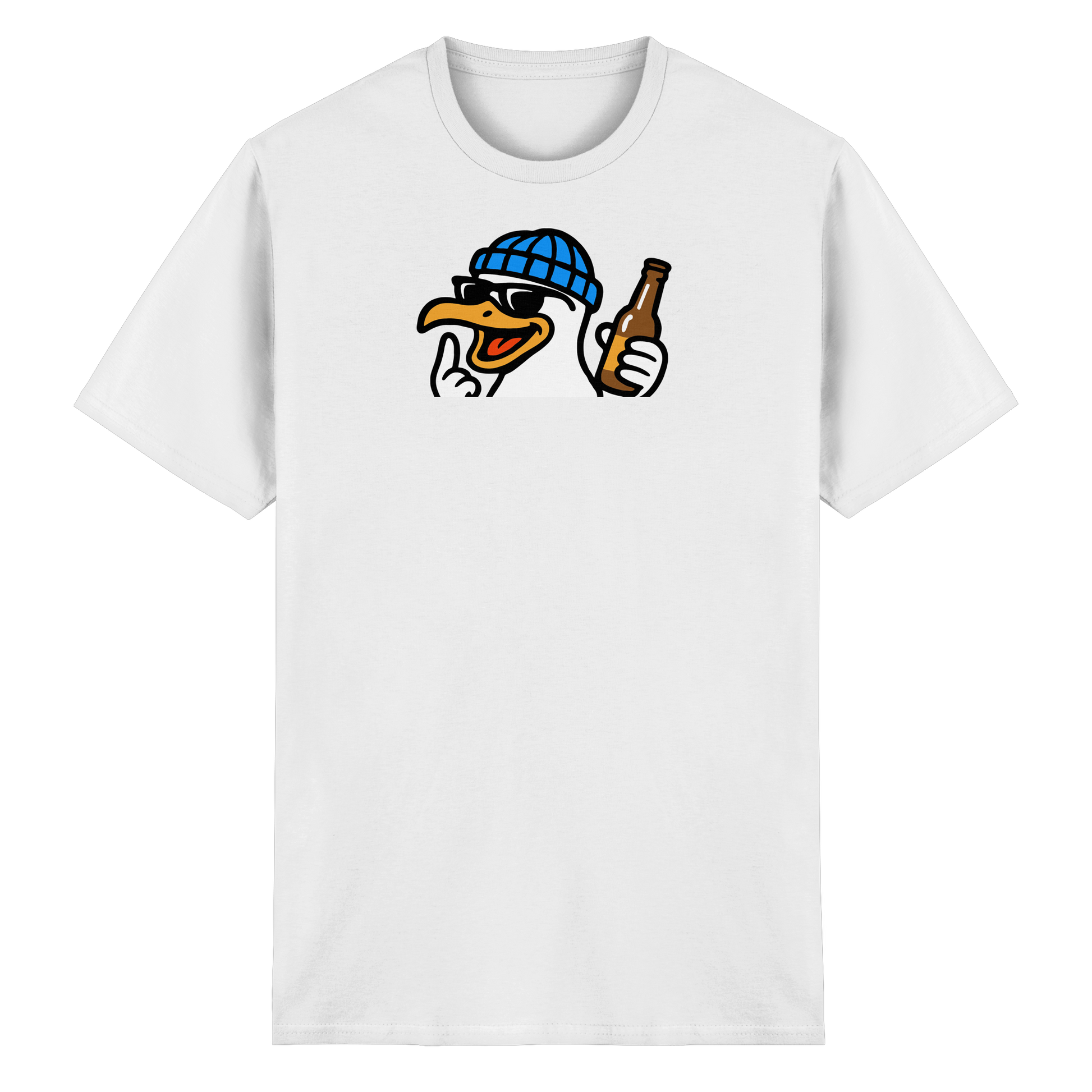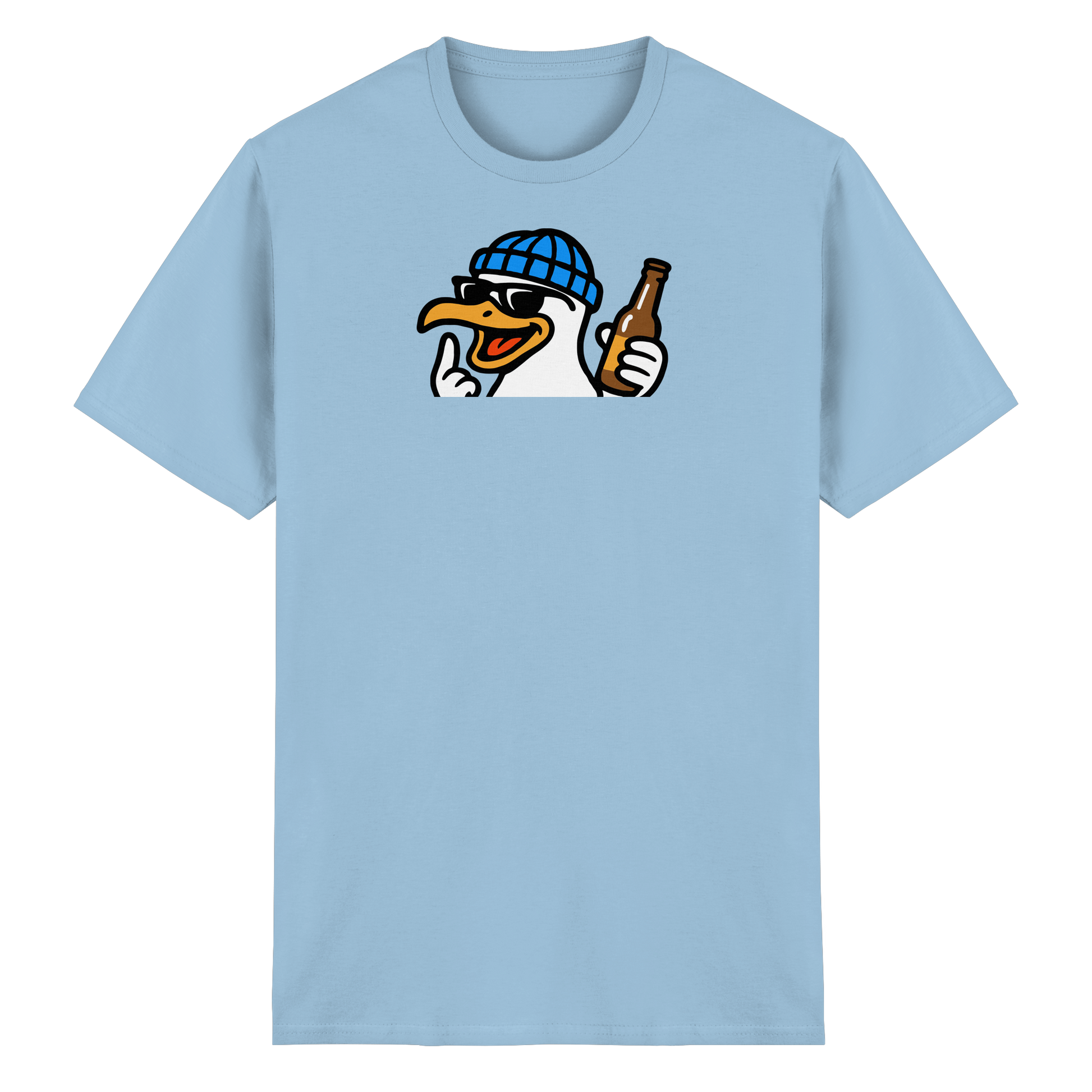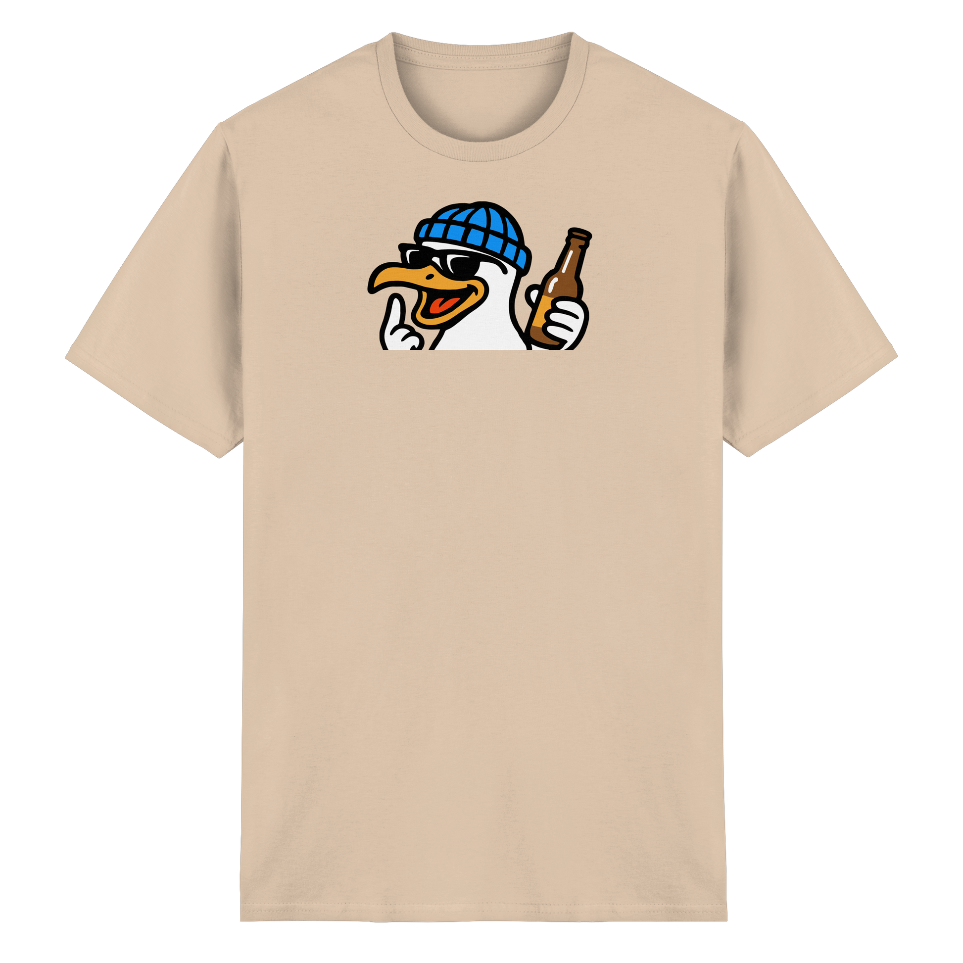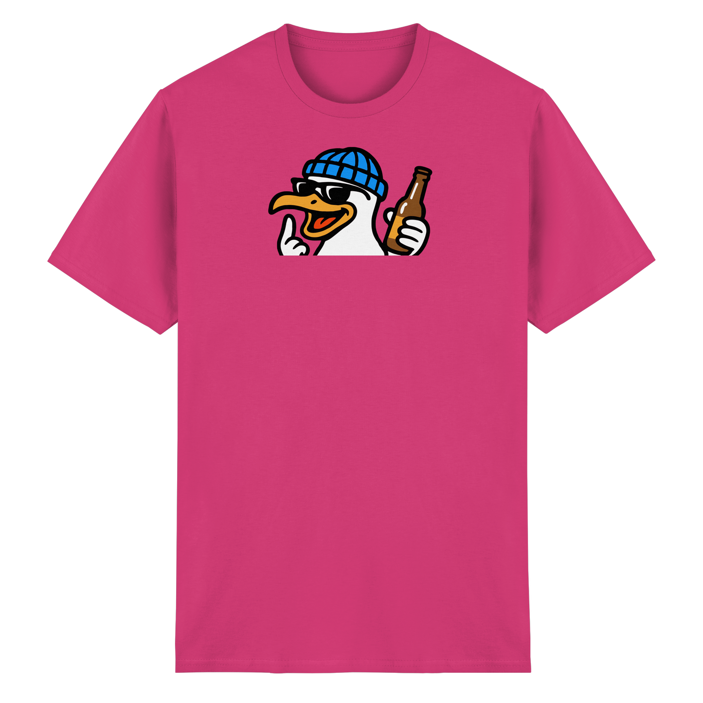 Wenn diese Möwe auf dem Shirt erscheint, wird der Abend nicht harmlos. Mit Schnaps im Blut, Beat im Herzen und einem ausgestreckten Flügel macht sie klar: Heute wird nicht diskutiert – heute wird eskaliert. Sie fliegt durch Clubs, Bars und WG-Küchen wie ein anarchischer Party-Prophet. Wer sie sieht, weiß: Lass dein Urteil stecken, sie ist auf Mission. Keine Ausreden, keine Smalltalk-Sperenzchen – nur Bass, Beats und bitterböser Blick. Wer mit dieser Möwe kommt, bringt keine gute Laune – sondern Party mit Kante und Konterbier.