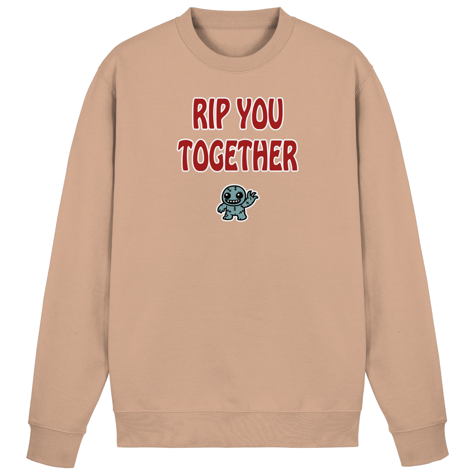 Mit diesem Motiv schickst du eine charmant-morbide Botschaft in die Welt: „Rip you together“ – eine schön schiefe Übersetzung von „Reiß dich zusammen“. Darunter ein niedlicher Zombie, der fröhlich winkt, als wolle er sagen: Hey, alles easy … oder ich reiß dich halt auseinander. Dieses Design spielt perfekt mit Kontrasten: supersüß auf den ersten Blick, leicht verstörend auf den zweiten. Genau wie du, wenn du lächelst, obwohl du innerlich schon längst am Limit bist. Der winkende Zombie steht für diesen Moment zwischen „Ich hab’s im Griff“ und „Ich eskaliere gleich komplett“ – und er macht das Ganze sogar noch sympathisch. Ob im Büro, bei der nächsten WG-Diskussion oder auf einem Rave, bei dem einfach gar nichts mehr nach Plan läuft – mit diesem Motiv setzt du ein klares Statement: Ich bin friedlich … solange man mich lässt.