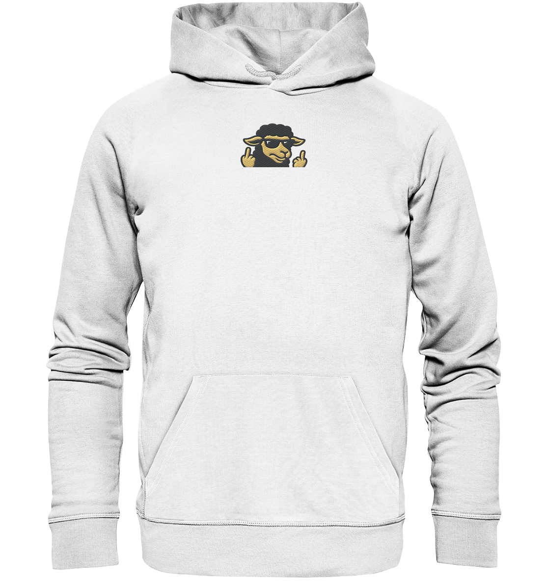 Schwarzes Schaf mit Mittelfinger – Schluss mit Nettigkeit - Organic Hoodie (Stick)
