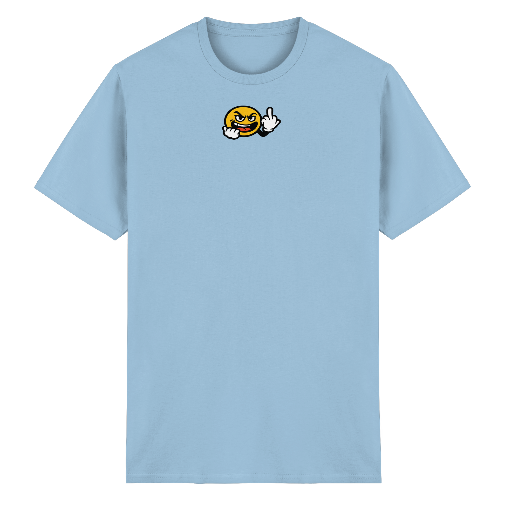 Du hast einen guten Tag – bis jemand ihn ruiniert. Dieses Shirt hilft, bevor es so weit kommt. Der Smiley ist dein Schild: freundlich, aber wehrhaft. Mit einem Lächeln und einem Finger zeigt er klar, dass deine Toleranzgrenze sichtbar ist. Ein grafisches Meisterwerk des höflichen Rückzugs. Kein Drama, keine Diskussion – nur ein Outfit, das dich versteht. Und alle anderen einfach fernhält.
