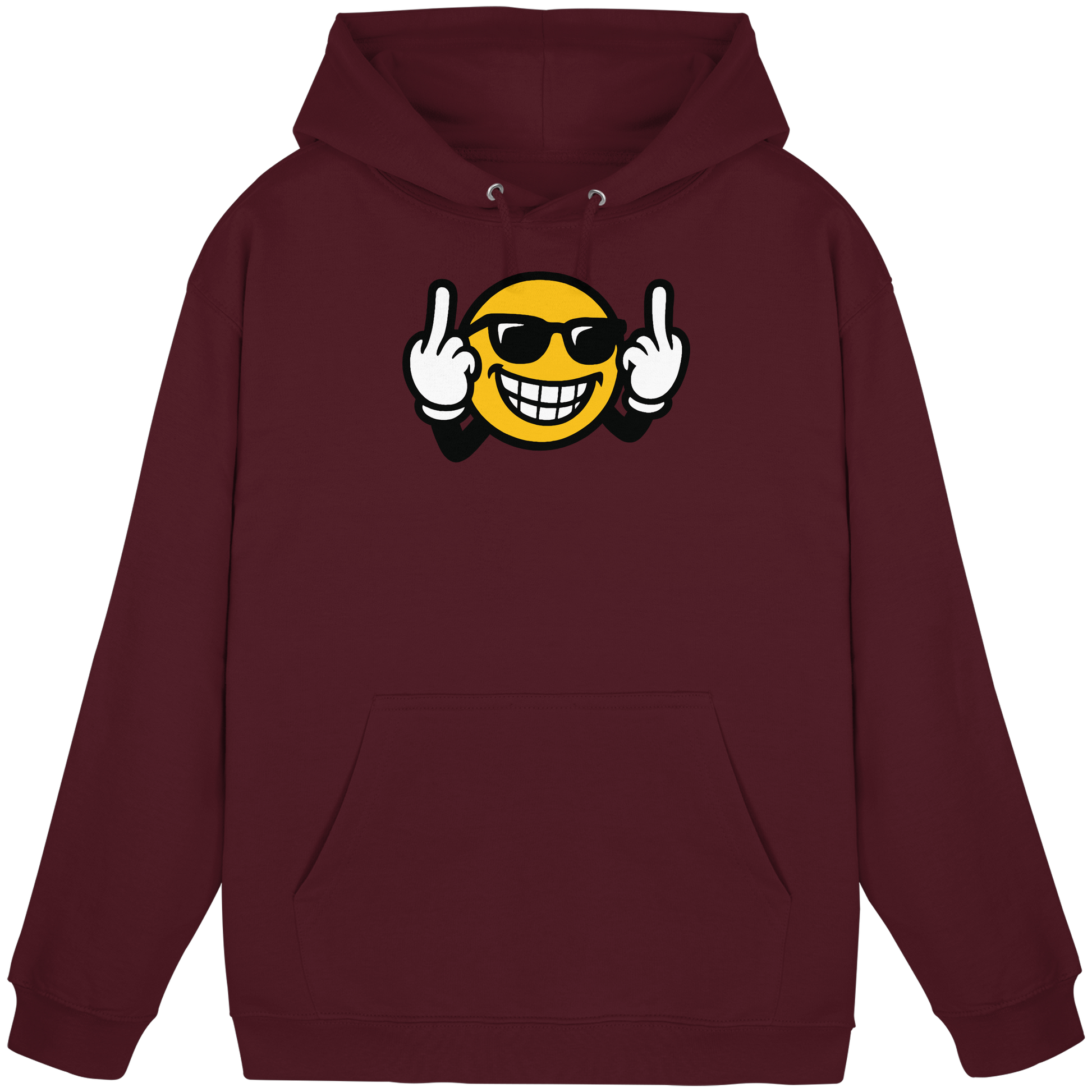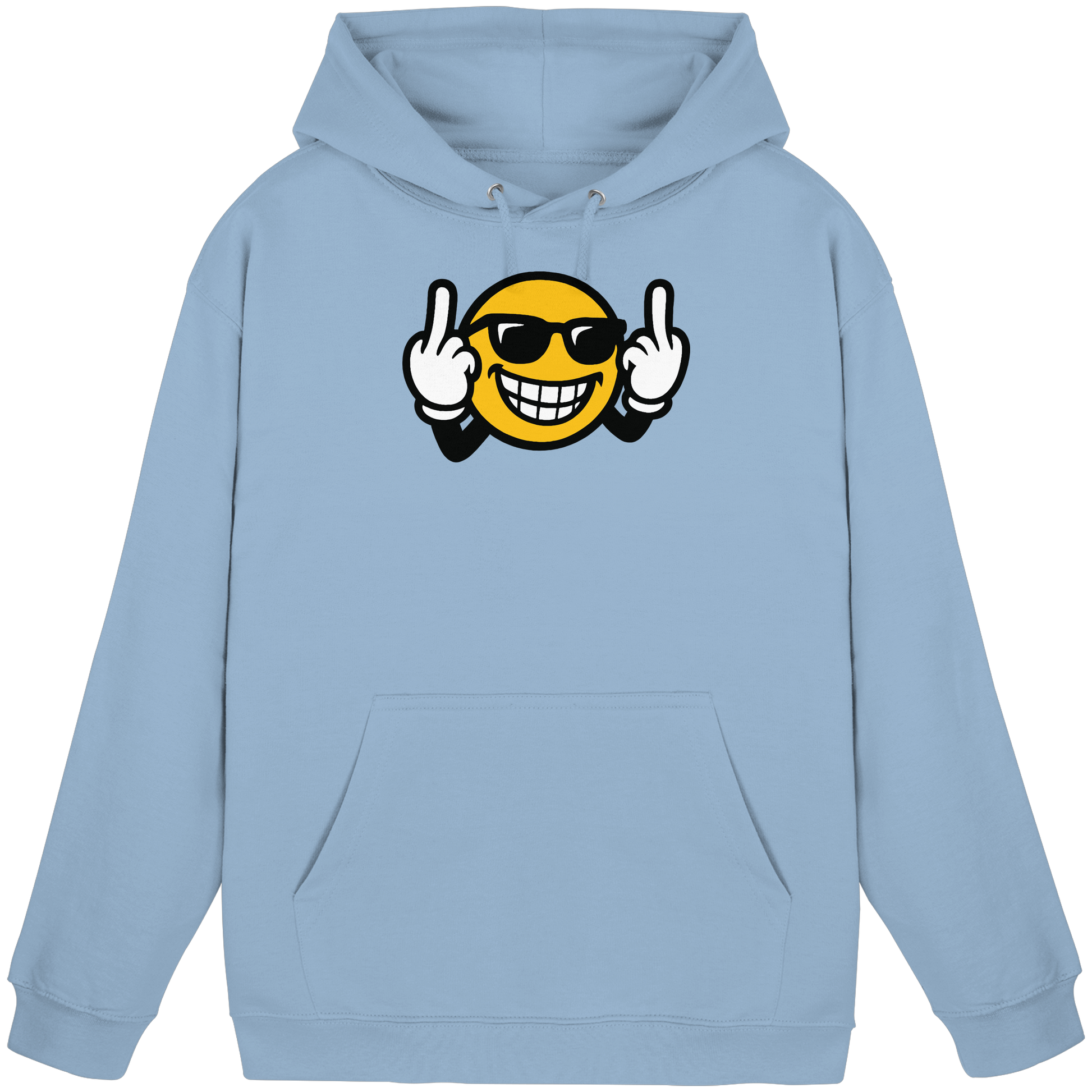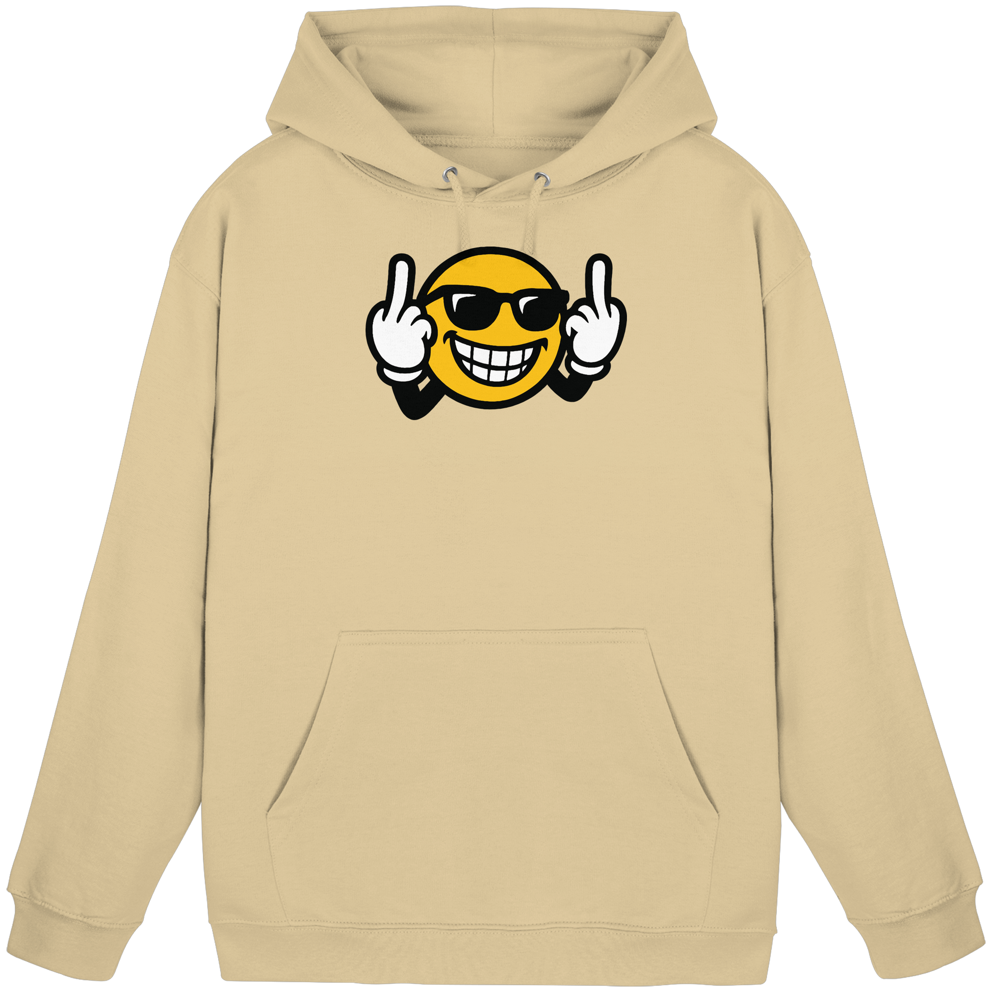 Smiley mit Mittelfinger – Nett lächeln. Weitergehen. - Basic Unisex Hoodie