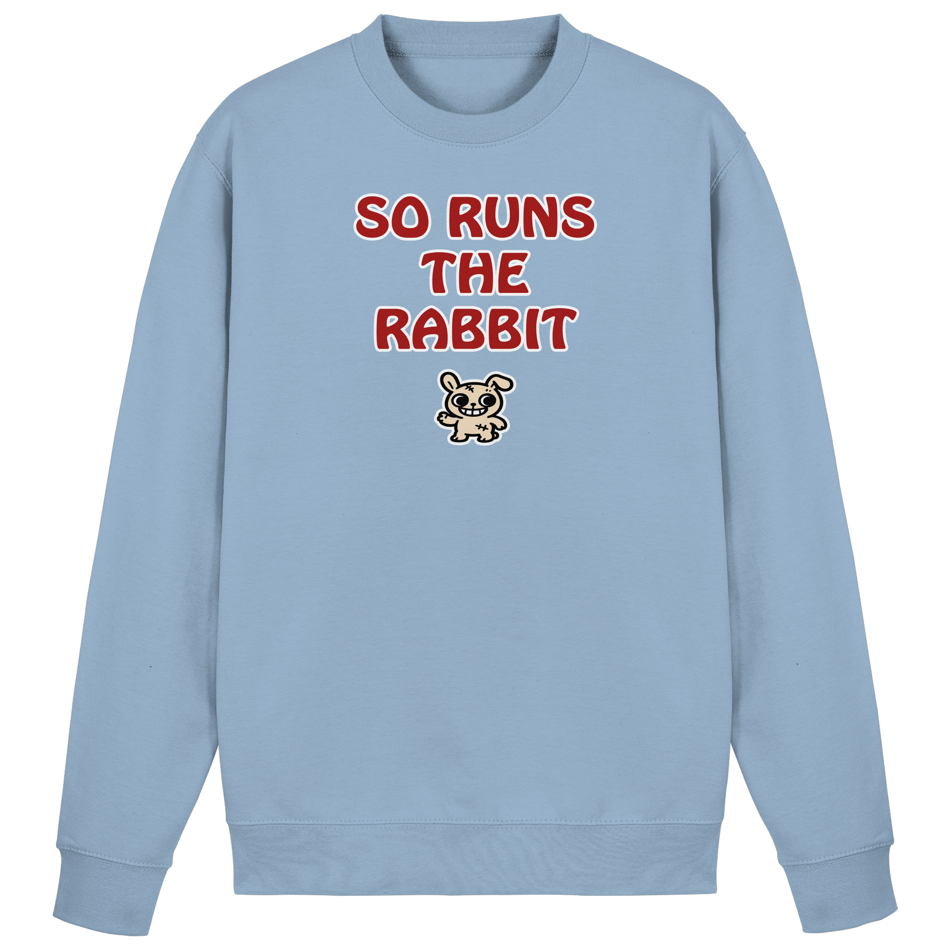 Mit diesem Motiv bringst du deine ganz eigene Art von Chaos auf den Punkt: „So runs the rabbit“ – die herrlich verdrehte Übersetzung von „So läuft der Hase“. Darunter hoppelt ein Zombiehase, der aussieht, als wäre er gerade direkt aus einem apokalyptischen Kaninchenbau entkommen. Dieses Design ist purer schwarzer Humor: Auf den ersten Blick niedlich, auf den zweiten absolut verstörend – genau wie das Leben selbst. Der Zombiehase verkörpert den Moment, in dem du lächelnd durchs Leben rennst, obwohl eigentlich alles längst den Bach runtergeht. Und trotzdem: Du rennst weiter. Ob Festivalnacht, stressiger Alltag oder totaler Ausnahmezustand – mit diesem Motiv machst du klar: So läuft’s eben. Nicht schön, nicht sauber, aber definitiv mit Stil.