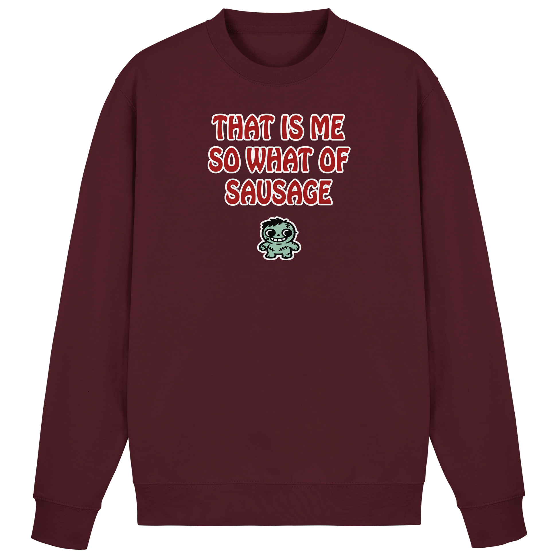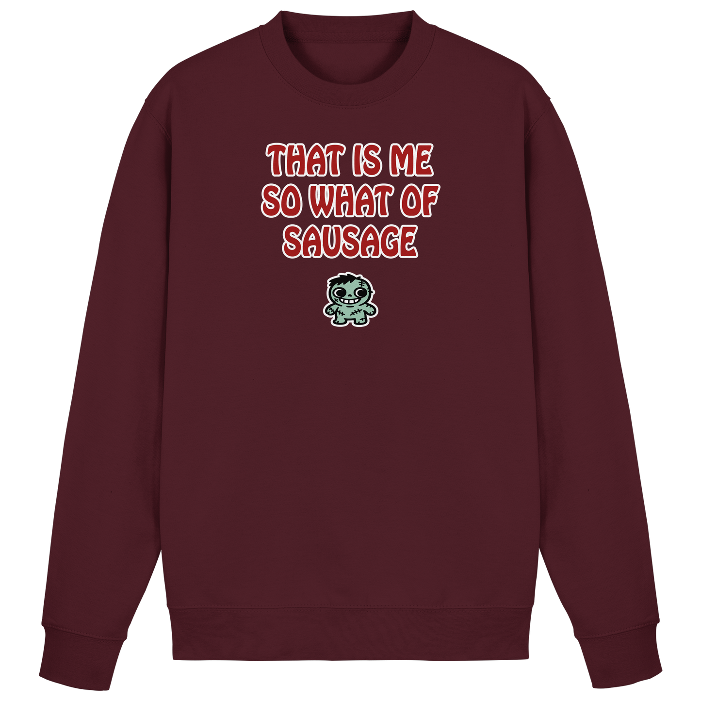 Mit diesem Motiv setzt du die ultimative „Mir doch egal“-Ansage: „That is me so what of sausage“ – die schön verdrehte Übersetzung von „Das ist mir so was von Wurst“. Darunter ein kleiner Zombie, der aussieht, als hätte er schon lange aufgehört, sich über irgendwas aufzuregen. Dieses Design ist wie ein Schild gegen unnötigen Stress. Es sagt: Mach, was du willst – ich bleib cool. Der kleine Zombie verkörpert genau diesen Vibe: halb zerfallen, aber total entspannt. Nichts kann ihn aus der Ruhe bringen, nicht mal der hundertste Montag oder das Chaos im Club. Ob Alltag, WG-Drama oder Festival-Marathon – mit diesem Motiv machst du klar, dass du keine Energie an Kleinkram verschwendest. Du bist schon weiter – irgendwo zwischen Humor, Resignation und absoluter Gelassenheit.