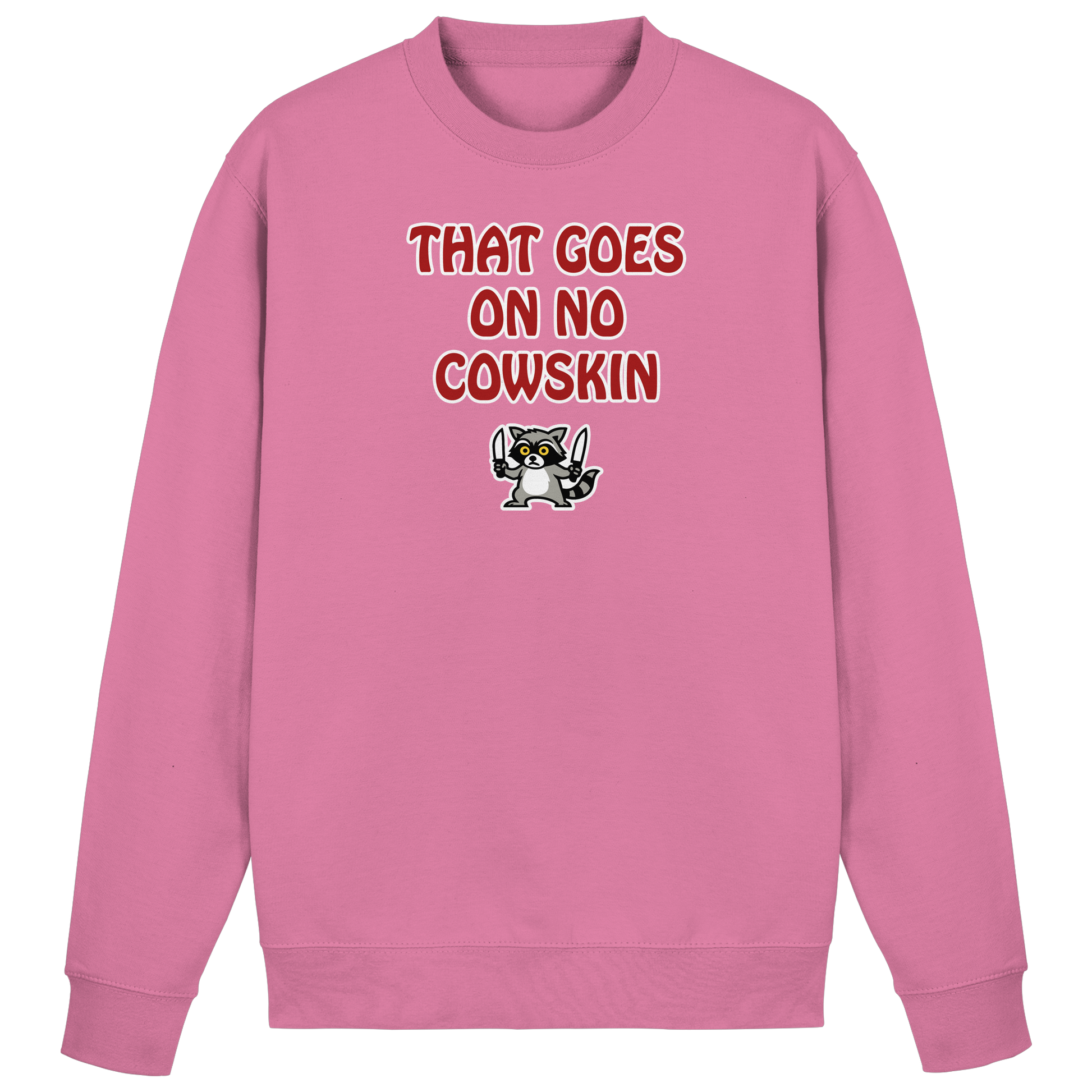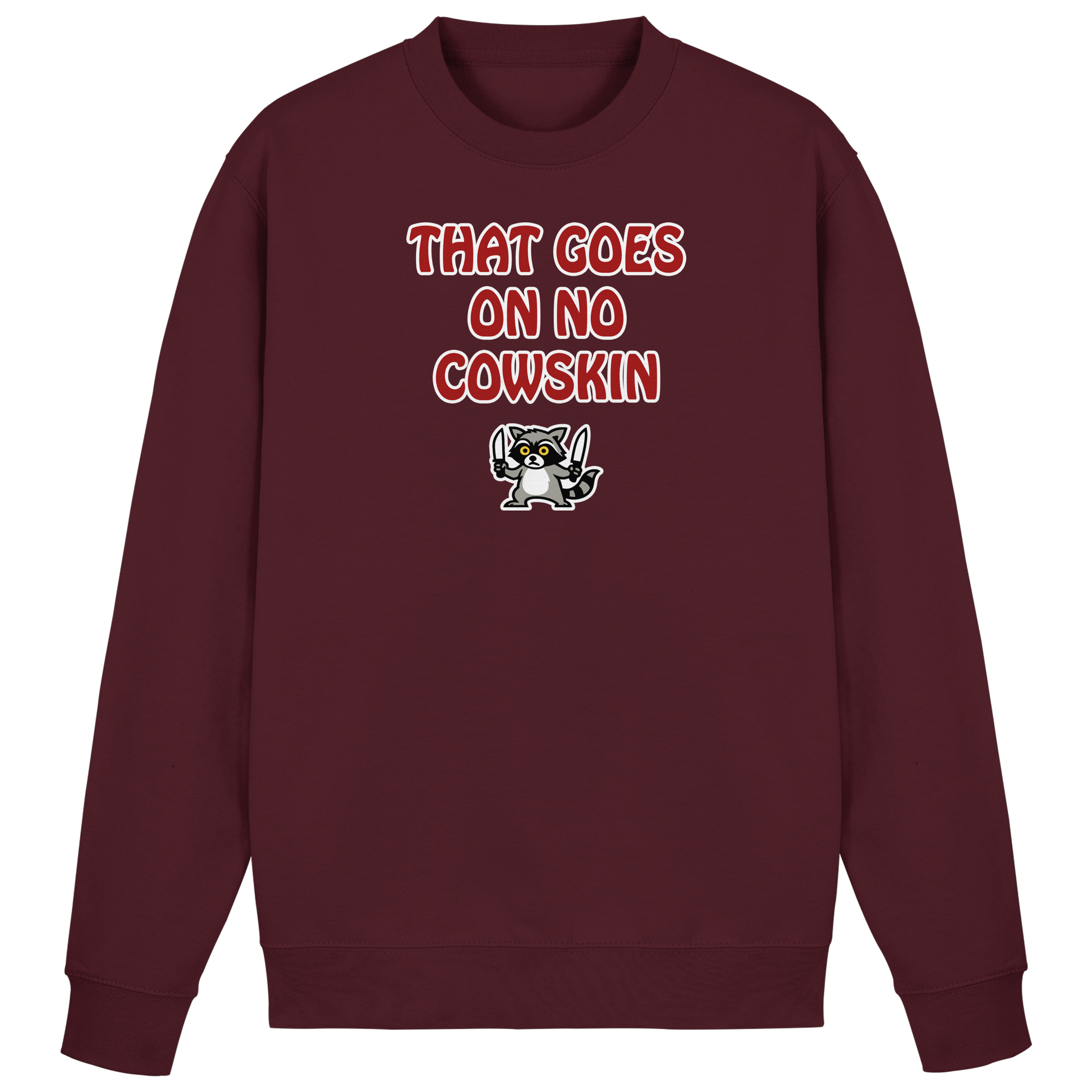 Mit diesem Motiv servierst du ein Statement mit Biss: „That goes on no cowskin“ – die wunderbar verdrehte Übersetzung von „Das geht auf keine Kuhhaut“. Darunter ein Waschbär, bewaffnet mit Messern, der aussieht, als hätte er beschlossen: So viel Chaos passt garantiert nicht mehr aufs Fell. Dieses Design steht für all die Momente, in denen dir die Absurdität des Lebens endgültig den letzten Nerv raubt. Der Waschbär ist dabei dein perfekter Stellvertreter: klein, süß, aber brandgefährlich, wenn’s hart auf hart kommt. Ein Symbol für das Leben zwischen „Alles easy“ und „Ich eskaliere gleich komplett.“ Ob im Büro, im WG-Krieg um den Abwasch oder mitten auf einem Festival, wenn wieder irgendwer übertreibt – mit diesem Motiv machst du klar: Hier ist Schluss mit lustig.