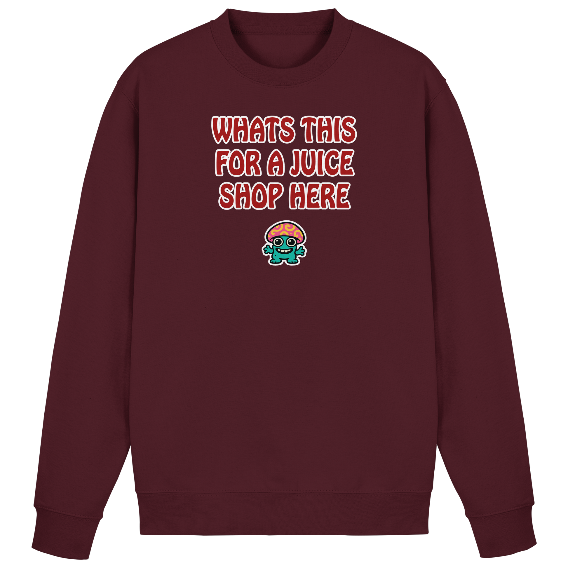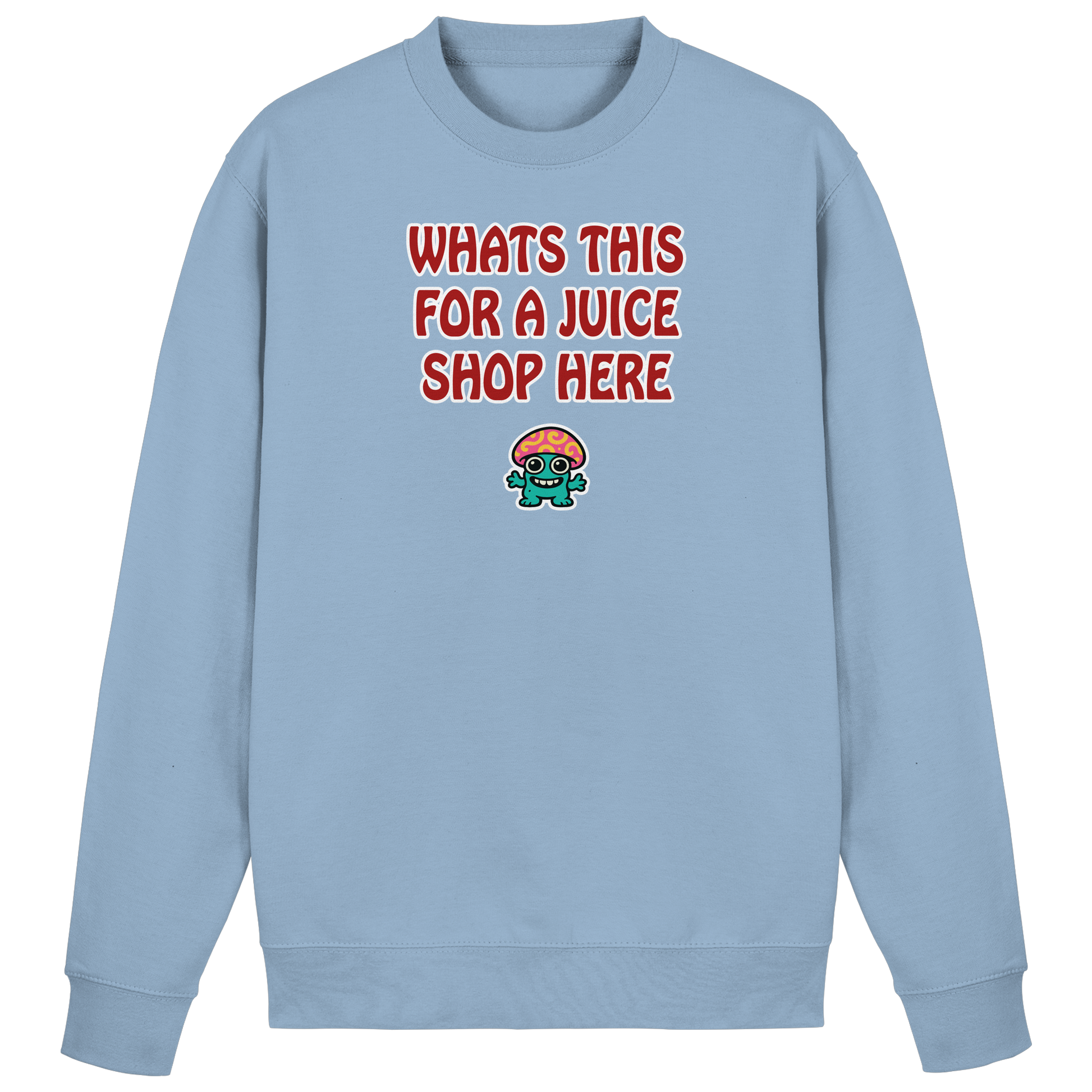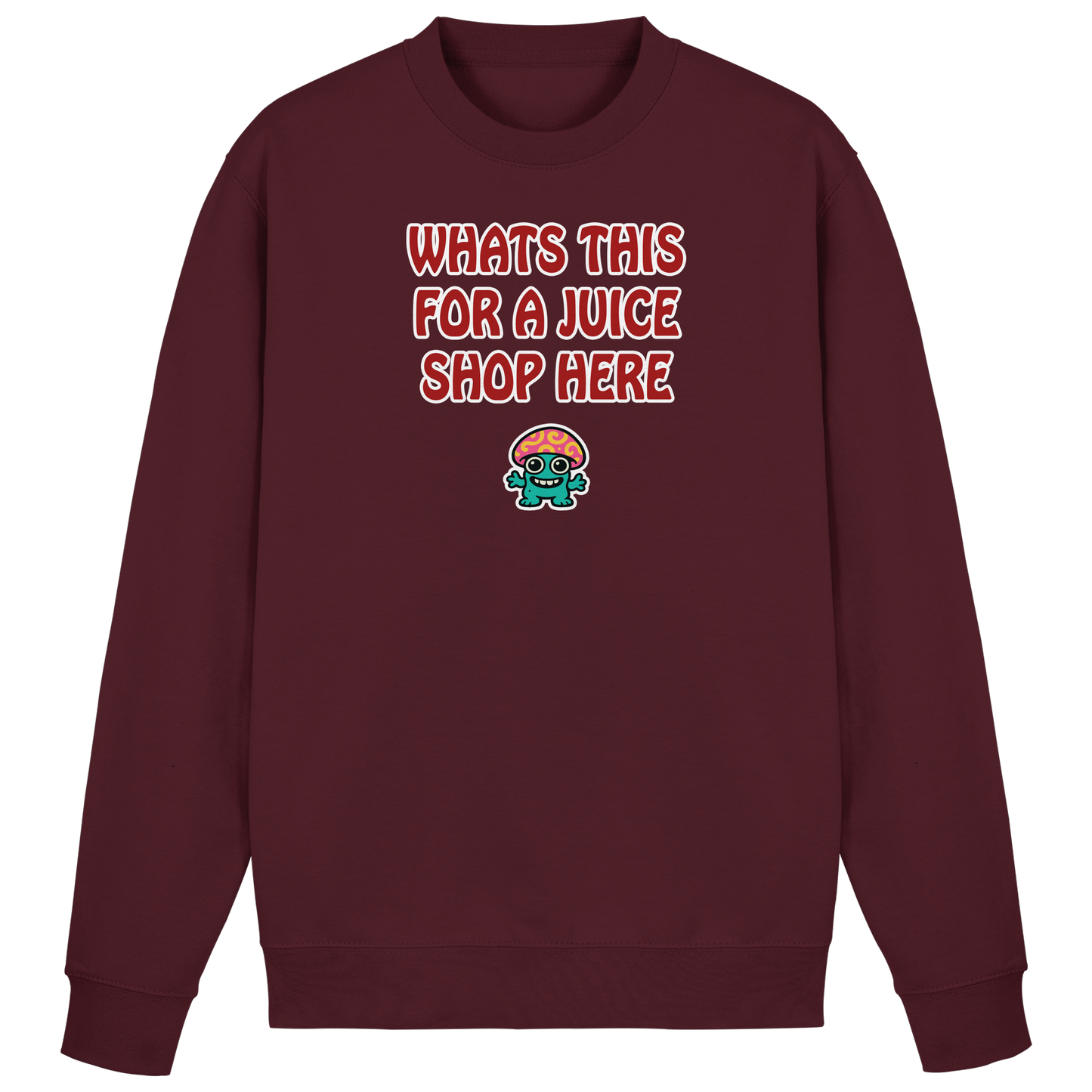 Mit diesem Motiv stellst du die einzig richtige Frage, wenn’s wieder völlig absurd wird: „What’s this for a juice shop here“ – die grandios verdrehte Übersetzung von „Was ist das hier für ein Saftladen?“. Darunter ein psychedelischer Pilz, der so bunt grinst, als würde er das Chaos nicht nur feiern, sondern höchstpersönlich veranstalten. Dieses Design ist dein Statement für all die Situationen, in denen einfach nichts mehr Sinn ergibt – aber alles irgendwie lustig ist. Der Pilz ist dein Spirit Animal: total abgefahren, farbenfroh und mit einer Energie, die schreit: Schlechte Organisation? Egal, wir trippen uns da schon durch. Ob im Büro, beim Amt, im Club oder auf dem Festival – mit diesem Motiv machst du klar: Du bist mitten im Chaos, aber niemals ohne Humor.