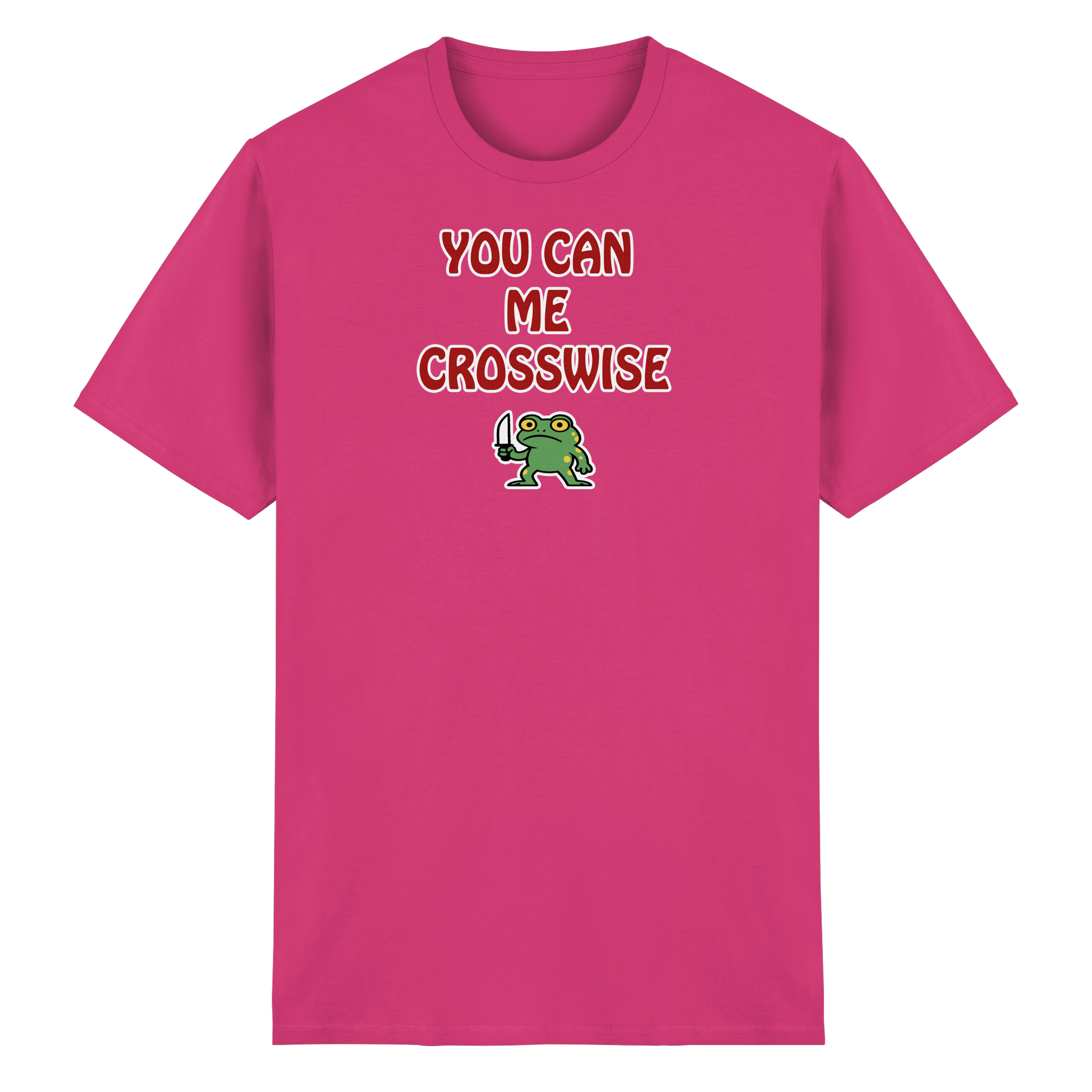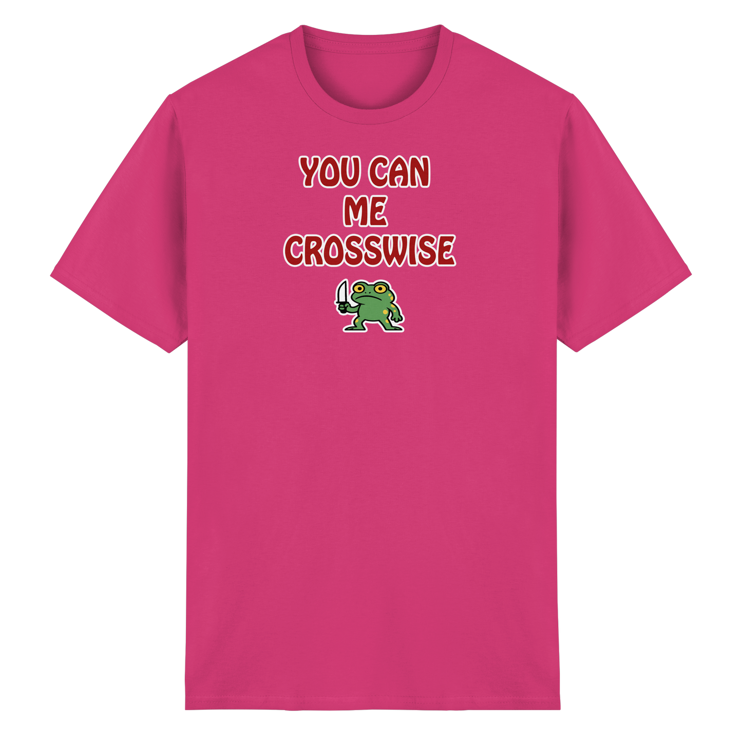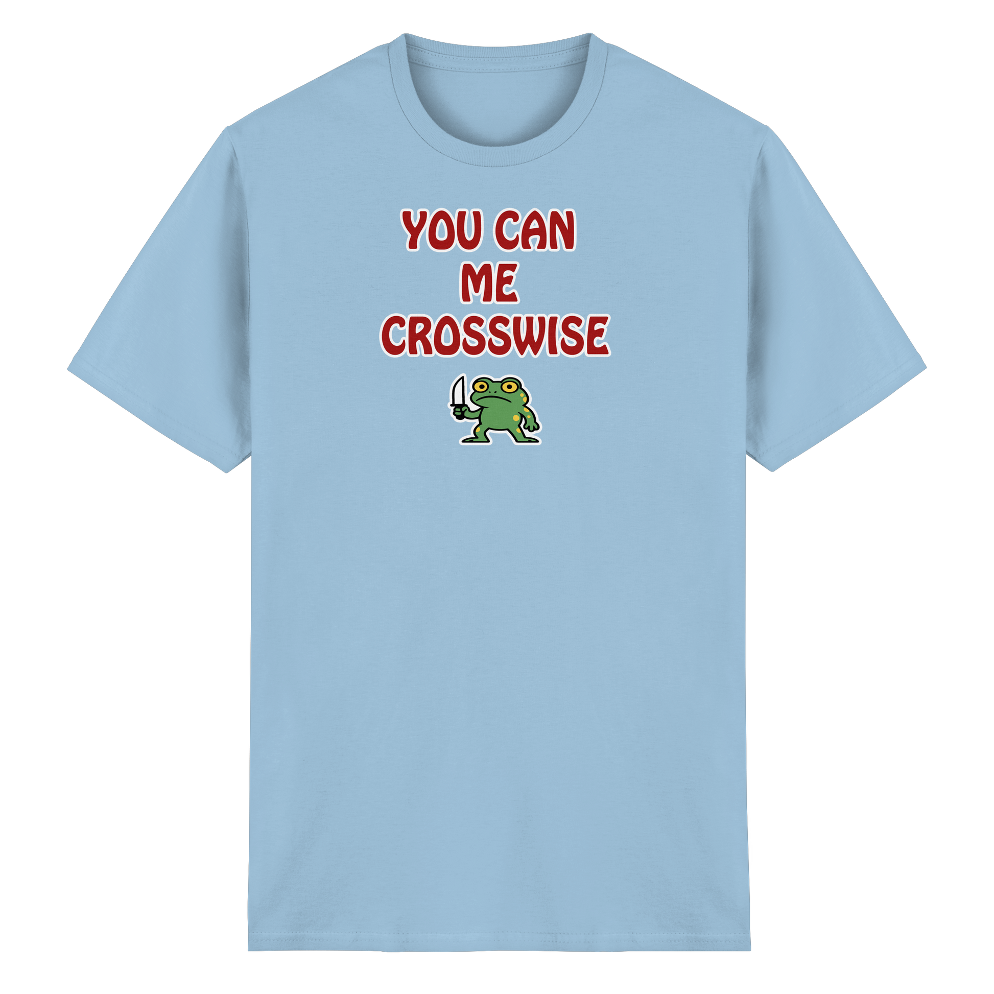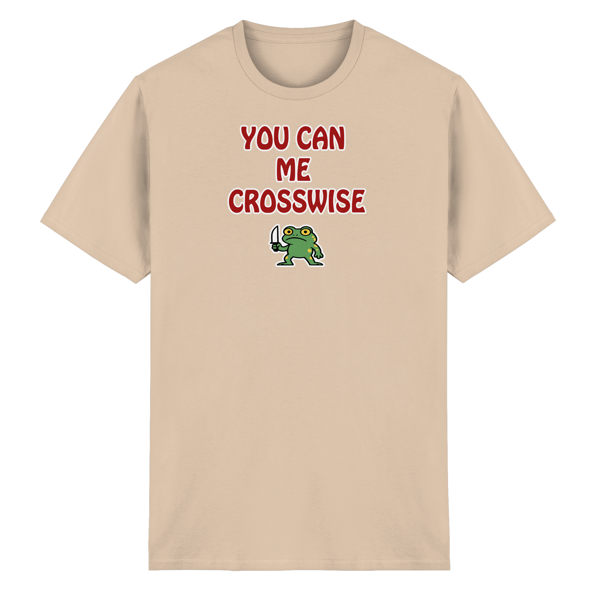 Mit diesem Design servierst du eine Ansage, die schärfer ist als das Accessoire des Motivs: „You can me crosswiese“ – die wunderbar verunglückte Übersetzung von „Du kannst mich kreuzweise“. Darunter ein Frosch mit Messer, der so entschlossen schaut, als würde er niemanden ohne klare Botschaft vom Teich lassen. Dieses Design ist pure Ironie: klein, grün, niedlich – und trotzdem bereit, jedem auf charmant-aggressive Art die Grenzen zu zeigen. Der Frosch ist dein perfekter Sidekick, wenn du mal wieder keine Lust auf Diskussionen, Drama oder nervige Menschen hast. Freundlich bleiben? Kann man. Muss man aber nicht. Ob Festival-Moshpit, WG-Debatten oder ein Montagmorgen im Büro – mit diesem Motiv machst du klar: Heute kein Bock, aber definitiv Style.