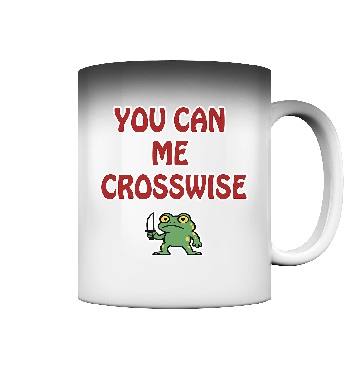 Mit diesem Design servierst du eine Ansage, die schärfer ist als das Accessoire des Motivs: „You can me crosswiese“ – die wunderbar verunglückte Übersetzung von „Du kannst mich kreuzweise“. Darunter ein Frosch mit Messer, der so entschlossen schaut, als würde er niemanden ohne klare Botschaft vom Teich lassen. Dieses Design ist pure Ironie: klein, grün, niedlich – und trotzdem bereit, jedem auf charmant-aggressive Art die Grenzen zu zeigen. Der Frosch ist dein perfekter Sidekick, wenn du mal wieder keine Lust auf Diskussionen, Drama oder nervige Menschen hast. Freundlich bleiben? Kann man. Muss man aber nicht. Ob Festival-Moshpit, WG-Debatten oder ein Montagmorgen im Büro – mit diesem Motiv machst du klar: Heute kein Bock, aber definitiv Style.